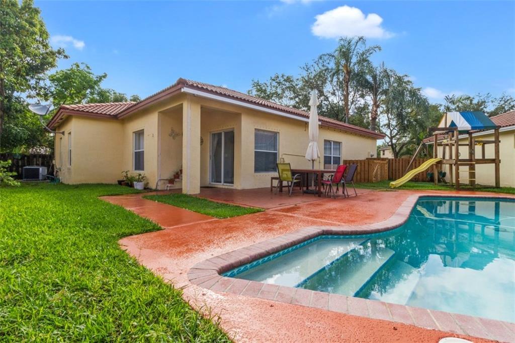 Updated and beautiful 3 bedroom, 2 bath home in gated community on a cul-de-sac with extra-large, fenced backyard. One of few homes in neighborhood with its own swimming pool! Association also has community pool. Features tile & laminate floors, crown molding, updated kitchen and bathroom, granite counters, stainless steel appliances, Nest thermostat, 1-car garage. A/C 2 years old w/10-year warranty. Newer appliances. Washer/dryer 2016. Microwave brand new. Pool has safety net. Desirable neighborhood.