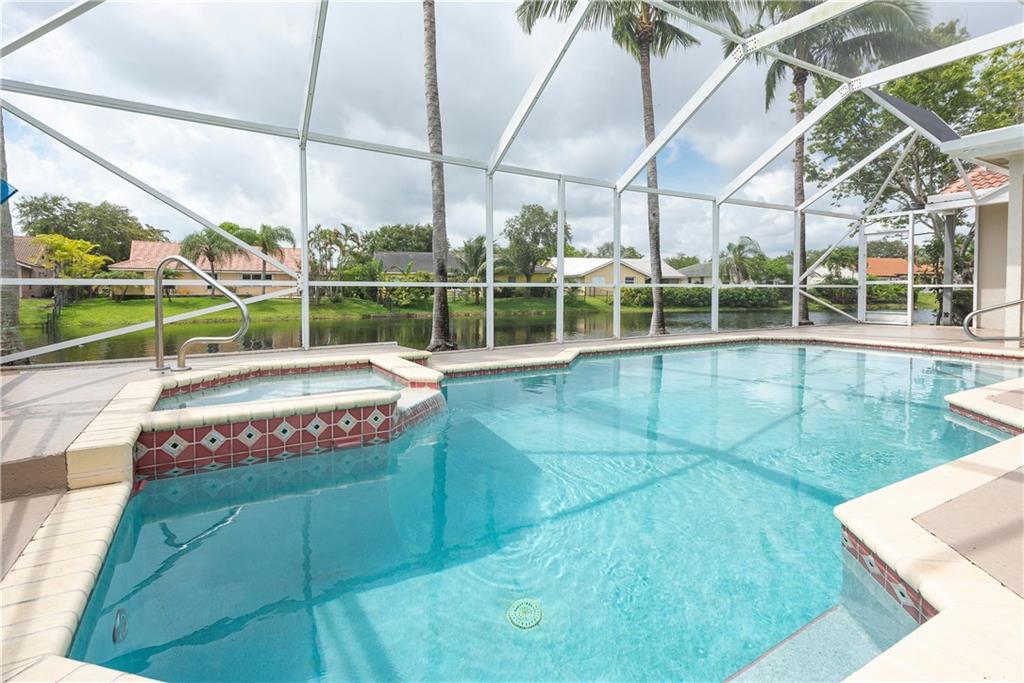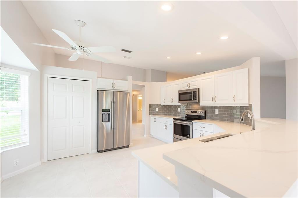 Completely renovated, updated & upgraded contemporary. Waterfront lot. New Kitchen, baths, carpet & fixtures. New roof in 2017. Quiet interior lot. Walk to parks, playground, shopping & house of worship. White cabinets, quartz countertops, subway tile backsplash, stainless steel undermount sink & appliances. Brushed nickel fixtures & hardware. Split bedroom plan, separate family room, vaulted ceilings with knockdown texture. Architecturally interesting. Large scr. patio, pool/spa overlooks wide canal.