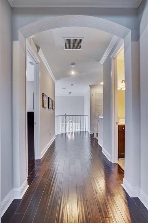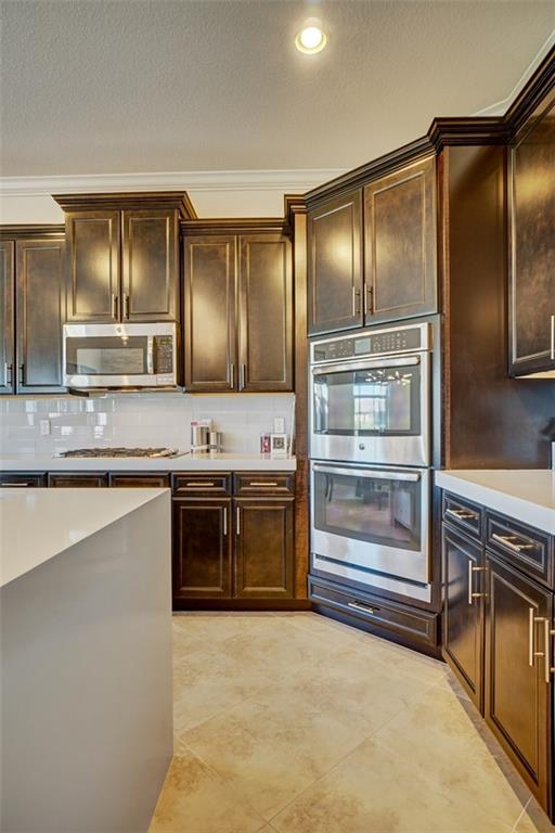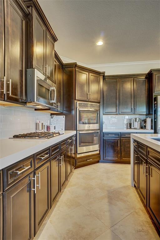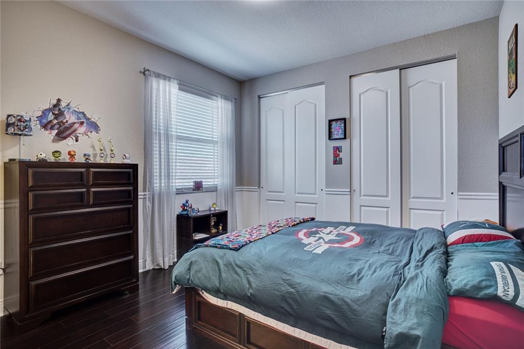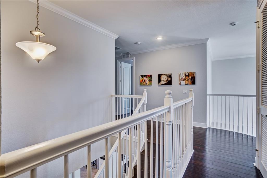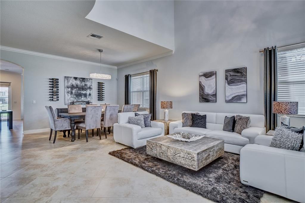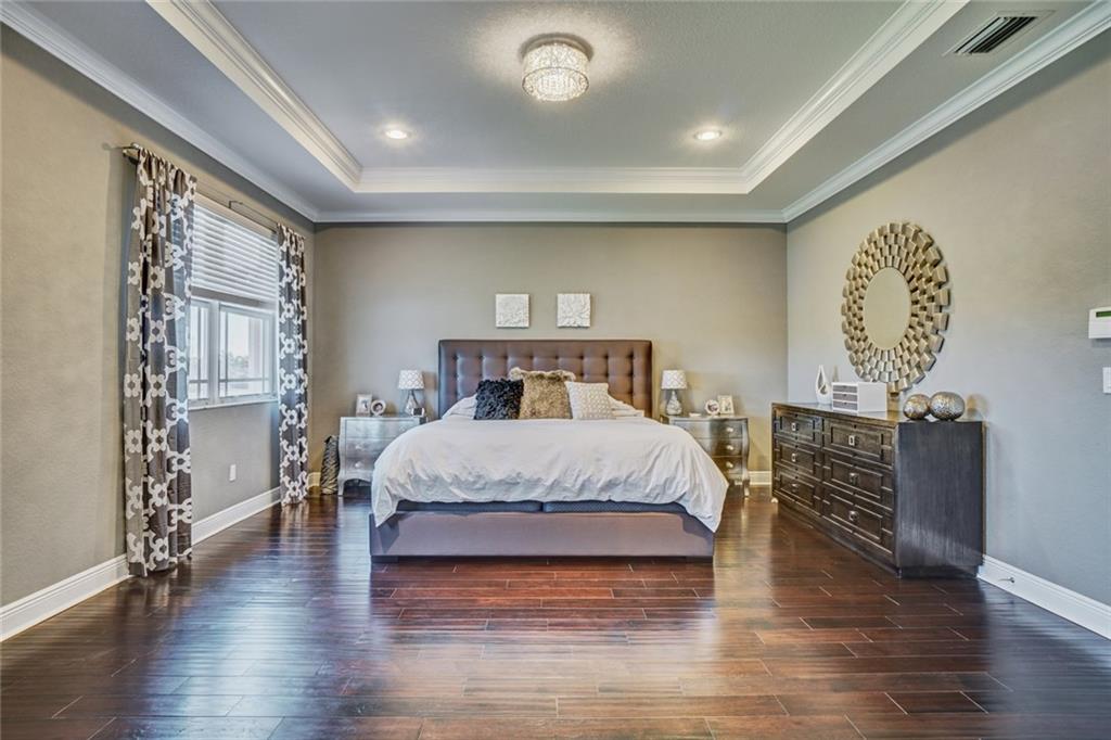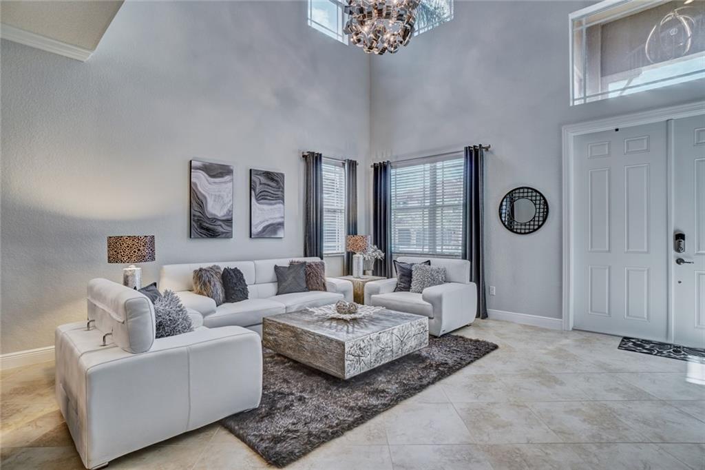 Simply Stunning upgraded home in MiraLago. Gorgeous 20" diagonal porcelain tile, designer colors, crown moldings, quartz kitchen countertop, custom kitchen fixtures & pantry doors, under-stairs closet, extended patio with extra gas hookups for fire pit & grill, gutters, beautiful landscaping, 2nd floor all hardwood, living room stone wall + wired for surround sound & outdoor speakers. This home shows better than a model. Amazing community with resort-style amenities. A+ schools.