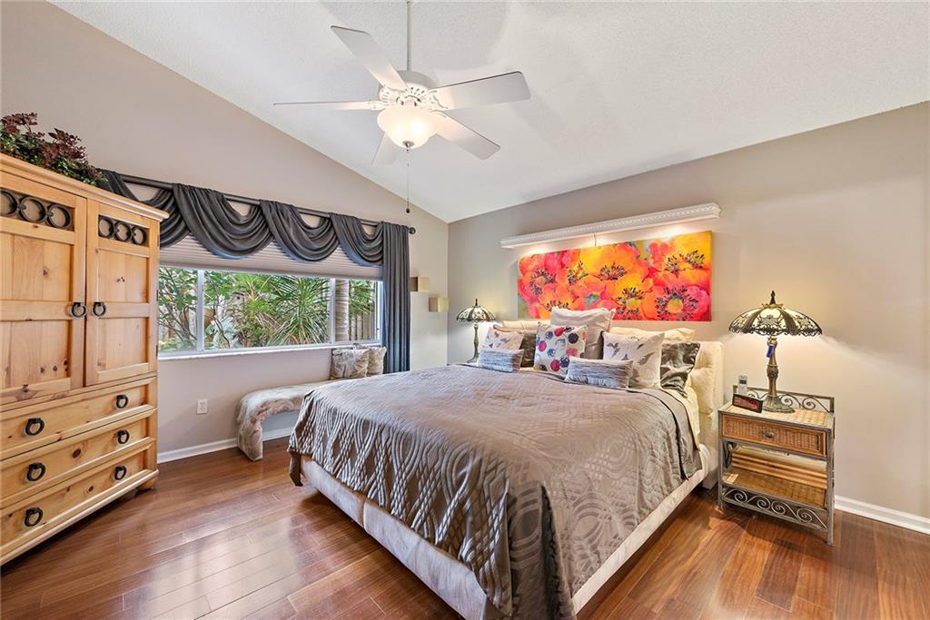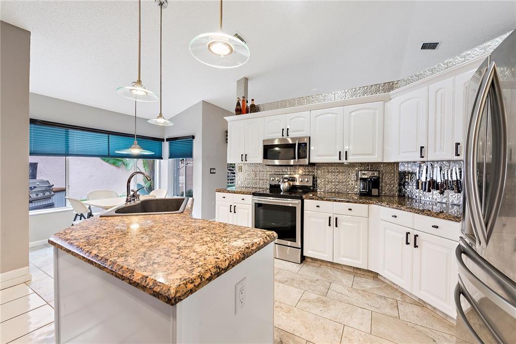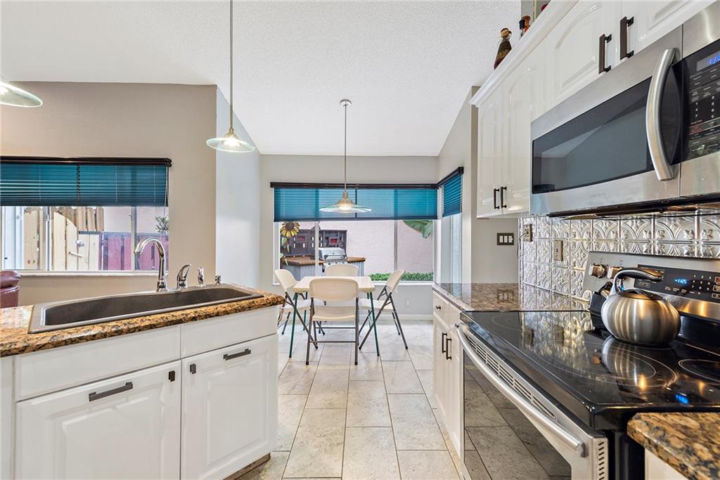 Outstanding 3 bed/2 bath home in desirable Sunset Cove!Gourmet kitchen featuring granite counter tops, beautiful tin tiles, stainless steel appliances and spacious breakfast nook. Expansive living area includes formal living/dining room, large family room and vaulted ceiling throughout. Beautiful master suite with large walk-in closet, built-ins and nicely update master bath. Completely private backyard with beautiful landscaping, large patio and built in grill for entertaining. Manned guard gate/beautiful community pool.