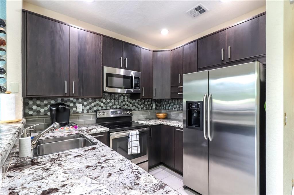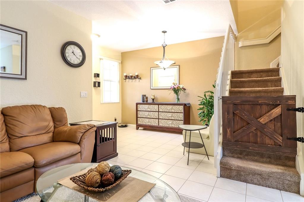 Tastefully updated with designer's touch throughout. Gated community! Substantially remodeled & updated 3/2.5 with a one car garage & driveway parks 2 cars. All bedrooms & spacious Laundry upstairs. Carpet upstairs and tiles on first floor. HOA includes landscaping, Roof & Bldg exterior. Furniture is negotiable. Open kitchen with granite countertop. Property is to be sold As-Is ONLY.