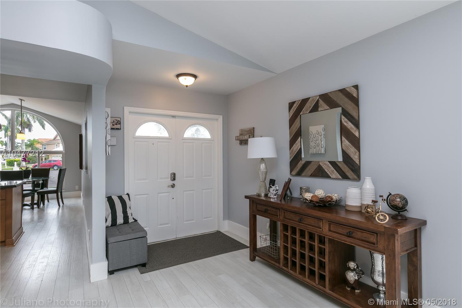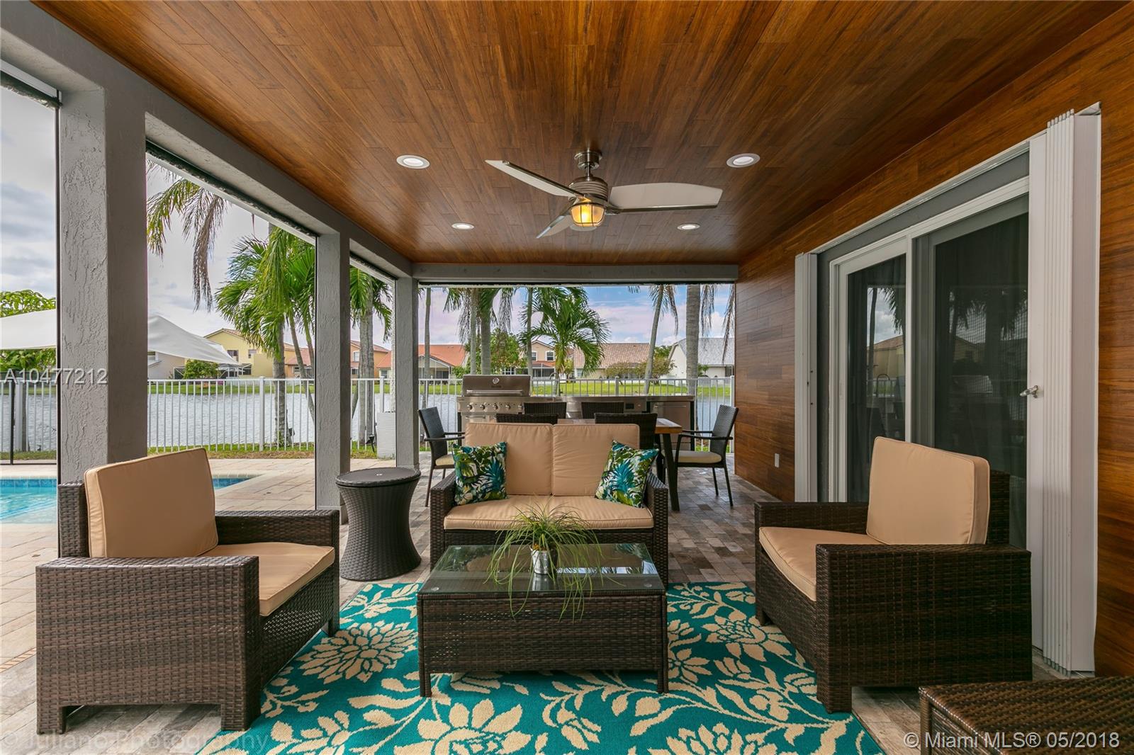 Gorgeous single family home at Boca Chase (Impressions) on a great cul-de-sac lot. Completely renovated home 3/2 with 2 car garage, waterproof laminate floors throughout, tastefully renovated bathrooms, open eat in kitchen with wood cabinets and granite counter top, stainless steel appliances, owner spent $35,000.00 on impact windows and hurricane shutters, patio customized with bamboo ceiling, retractable screen, bluetooth speakers, gigantic pool 30x16 with heater, outdoor shower, summer kitchen with marble top, sink and fridge, beautiful lake view, too many great features. Excellent location and great schools. READY TO MOVE IN!!! (furniture negotiable)