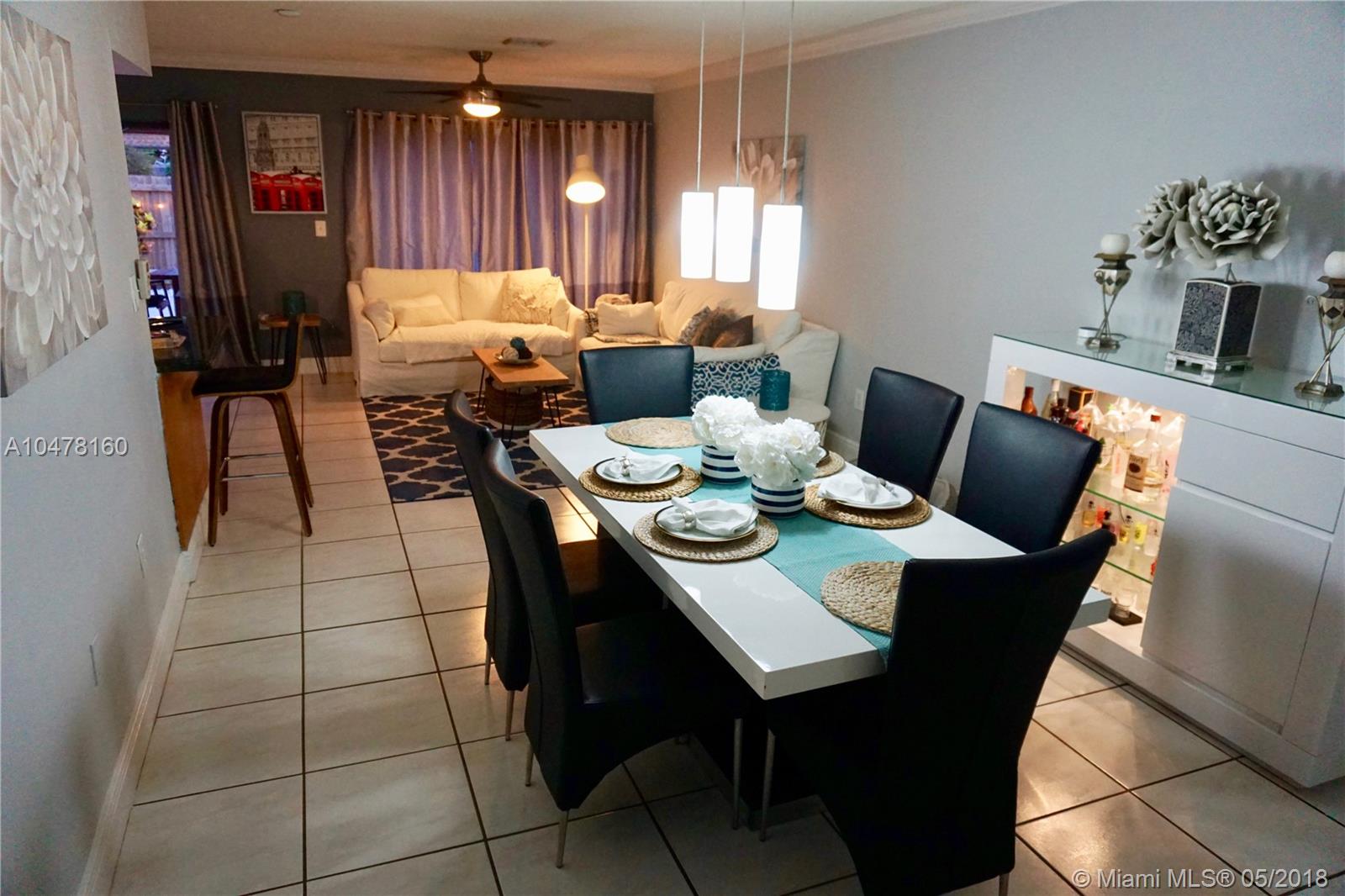 Opportunity to own this beautiful corner unit townhouse with 3 Bedrooms 2 Baths located at Country Club of Miami-Fairway. Open floor plan with spacious remolded kitchen, stainless steel appliances, spacious dinning/living room, title floor throughout. Large fenced backyard patio, low HOA fee of only $60 month!! Located in a very quiet neighborhood. Near shopping centers, restaurants, close to palmetto expressway and I/75. By appointments with agent only.