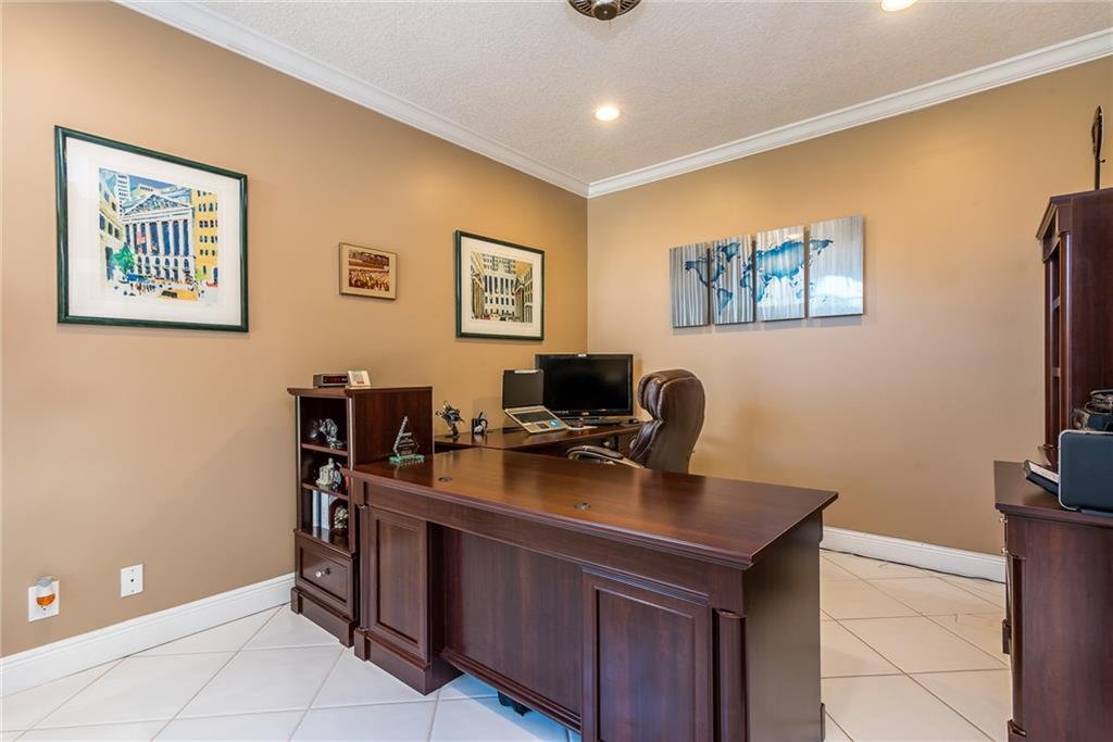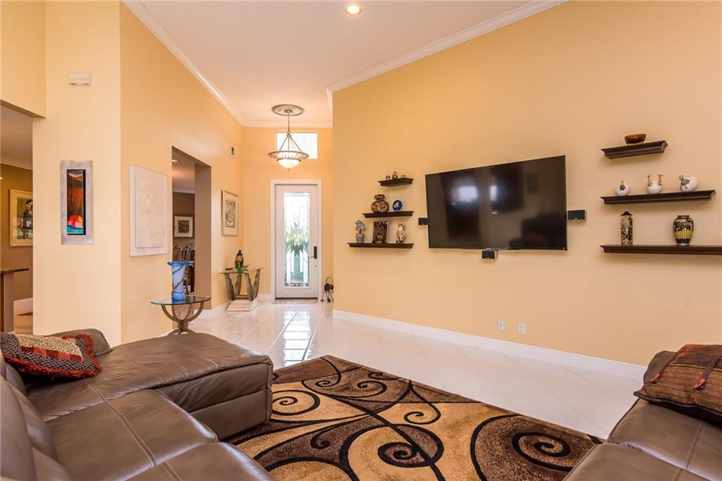 Turn-key. Beautiful updated home with a bright, open floor plan. Tons of upgrades. Corner w/ lake view from MBR & privacy. Kitchen has gorgeous granite. Baths are marble and travertine. Master has spa tub, a walk-in body shower and his & her walk-ins closets. Office can be converted back to 3rd bedroom with addition of a closet. House ext. just painted and roof waterproof/heat reflective coating has 12 yr warranty. Also hurricane shutters and landscape lighting. HOA incl. value: 24hr manned gate, cable-tv w/ HBO & Show, HI-speed internet, full gym, landscaping, clubhouse, sauna. No equity membership required!