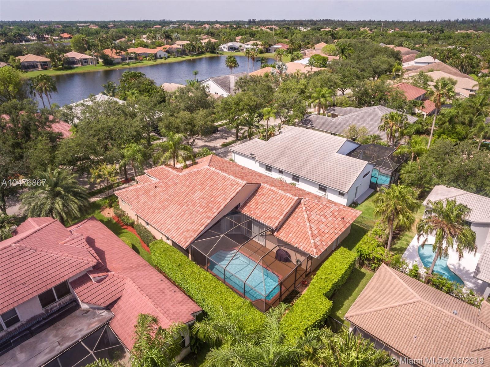 Tucked in the boutique community of Oakbrook at Weston Hills Country. Enjoy your Brand New roof, 2017. Oversized screened pool with cool deck and newer diamond bright. Freshly painted interior in todays colors. Renovated kitchen with upgraded appliances and granite countertops. Three renovated baths. 24x24 tile in living areas. Hardwood floors in master bedroom with volume ceilings. Full accordions, ficus hedged for ensured privacy. 5 spacious bedrooms with 3 full bath including cabana. Great curb appeal.