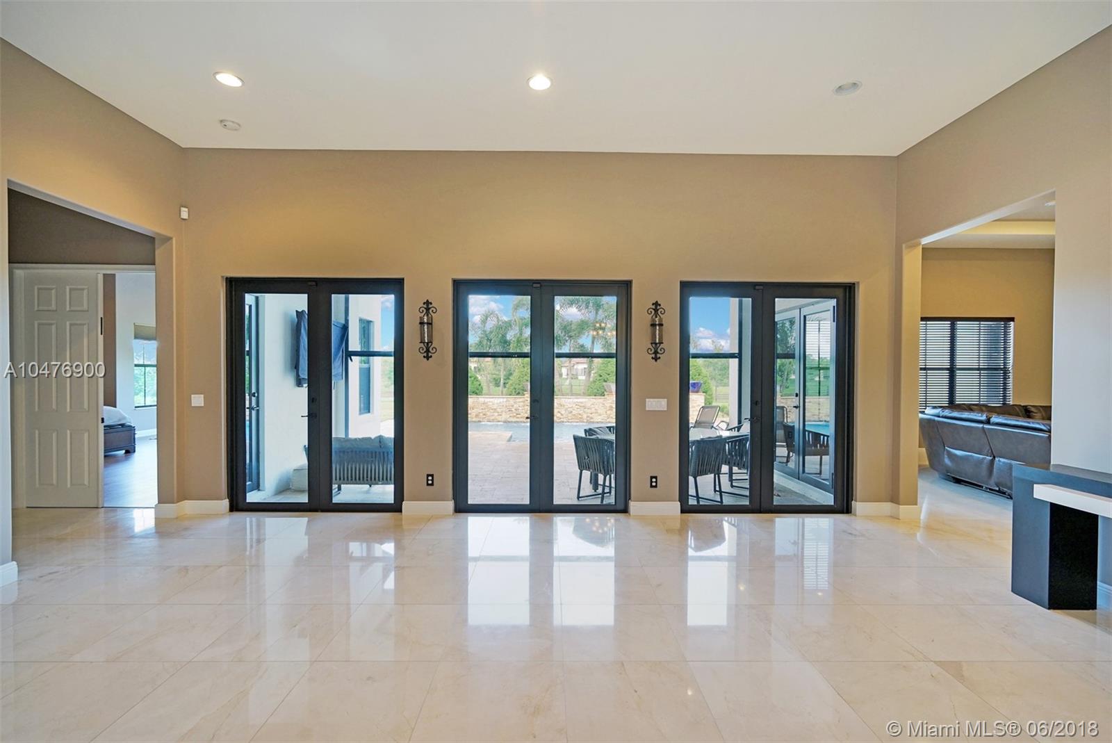 Magnificently Upgraded 1-Story home in recently built Parkside Estates. 5 Bedrooms & 4 Full Luxury Baths with glass tile, 24x24 Luxury Marble Flooring, Hi-Hat lighting everywhere, built-in Surround Speakers, Gourmet Kitchen with Granite Counters & High-end Stainless Appliances with Custom Italian Cabinetry, Deep freeze fridge, Large breakfast area, Surveillance system, Custom pool with salt water system and heater, Oversized 35,000 sq ft lot with high-end outdoor lighting decor. This outstanding estate is perfect for family and entertainment.