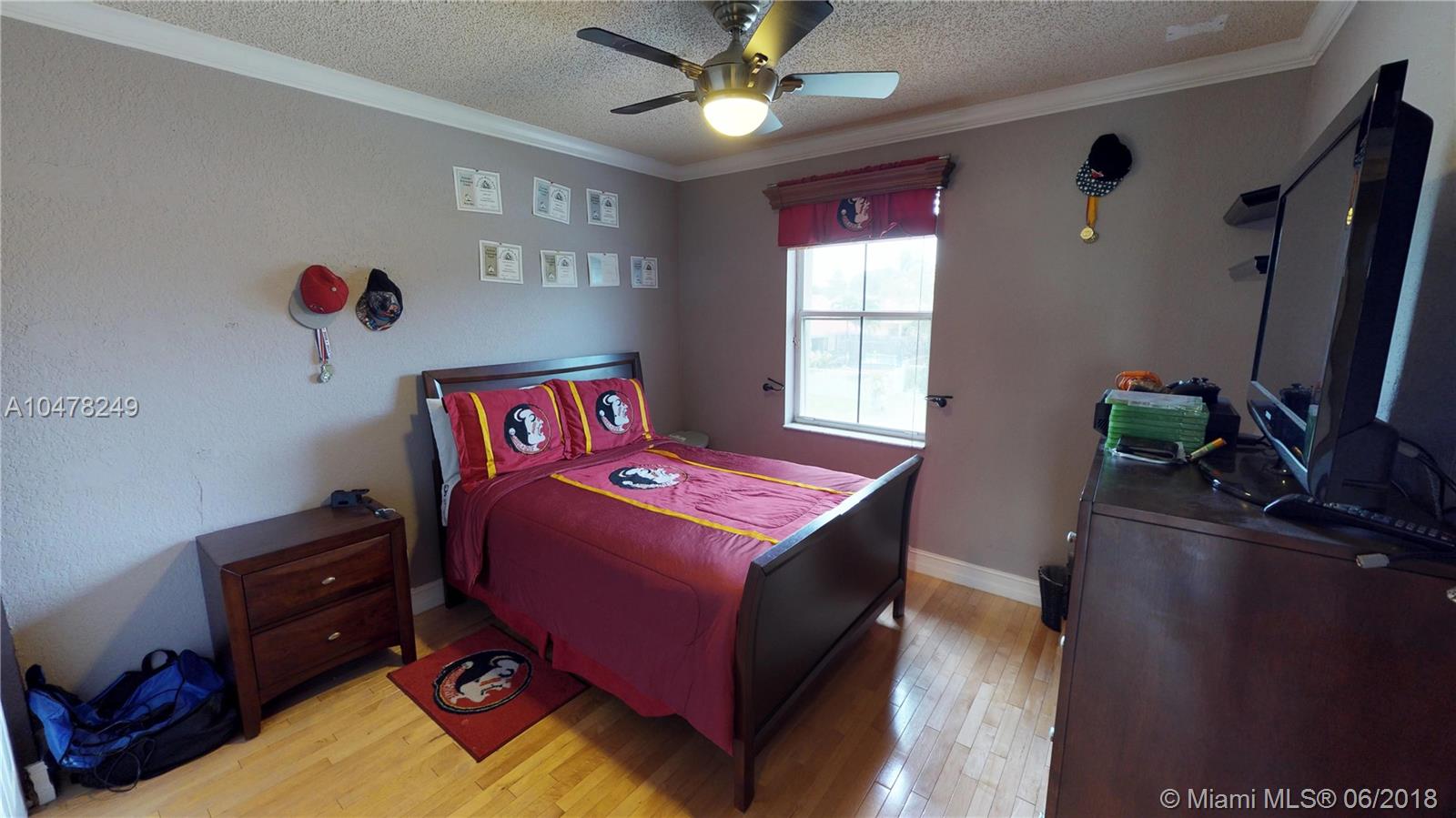 READY, SET, MOVE! This fabulous 4/2.5 home has it all. Awesome floor plan offers family room, breakfast nook, formal dining & living rooms. Retreat to all bedrooms upstairs with a magnificent master suite & huge walk in closet. Master bathroom offers dual sinks & jetted roman tub for your relaxation. Gourmet kitchen with all the bells & whistles includes SS appliances, granite counters/wood cabinets & built in wine refrig, great for entertaining. Decorator touches throughout this lovely home include hardwood floors upstairs, tile in all living areas & crown molding. Step out to paradise to just under 1/2 acre of sprawling, fully fenced land which boasts a separate storage shed, 1/2 basketball court, & tropically landscaped pool & hot tub! Located close to excellent schools & eateries.