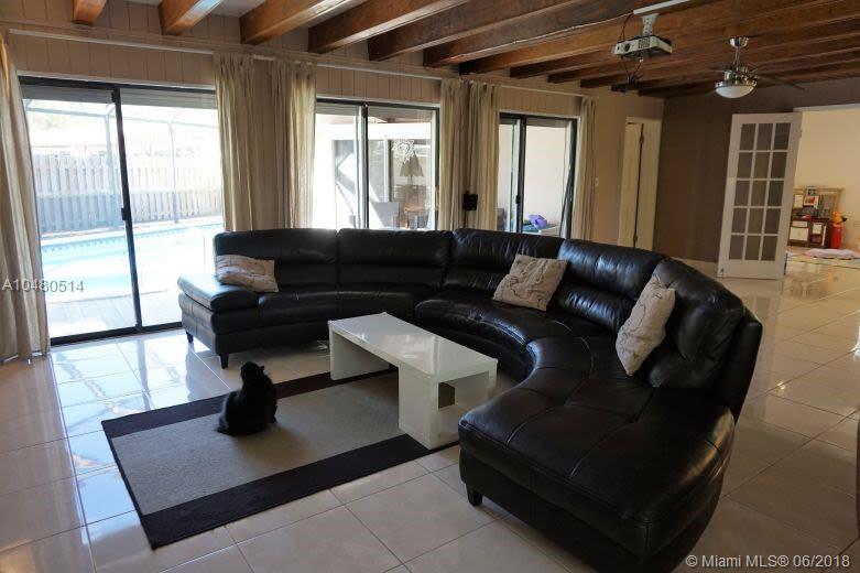 Spacious home located on a cul-de-sac in the heart of beautiful Miami Lakes. Great for entertaining. Ideal split floor plan for big families: 4 bedrooms including 2 masters, playroom can be used as a 5th bedroom, 3 bathrooms. Den can accommodate an office for 2 people. Big Florida room opening to the patio and the pool. New AC, new water tank, new washer/dryer. Great area with good schools, friendly neighbors, and children's playgrounds. Easy access to lake for kayaking, paddle boarding, etc. Main street and its restaurants and movie theater are a short bike ride away. House is located a few minutes from to major highways, yet in a tranquil area. Listing ID #344011