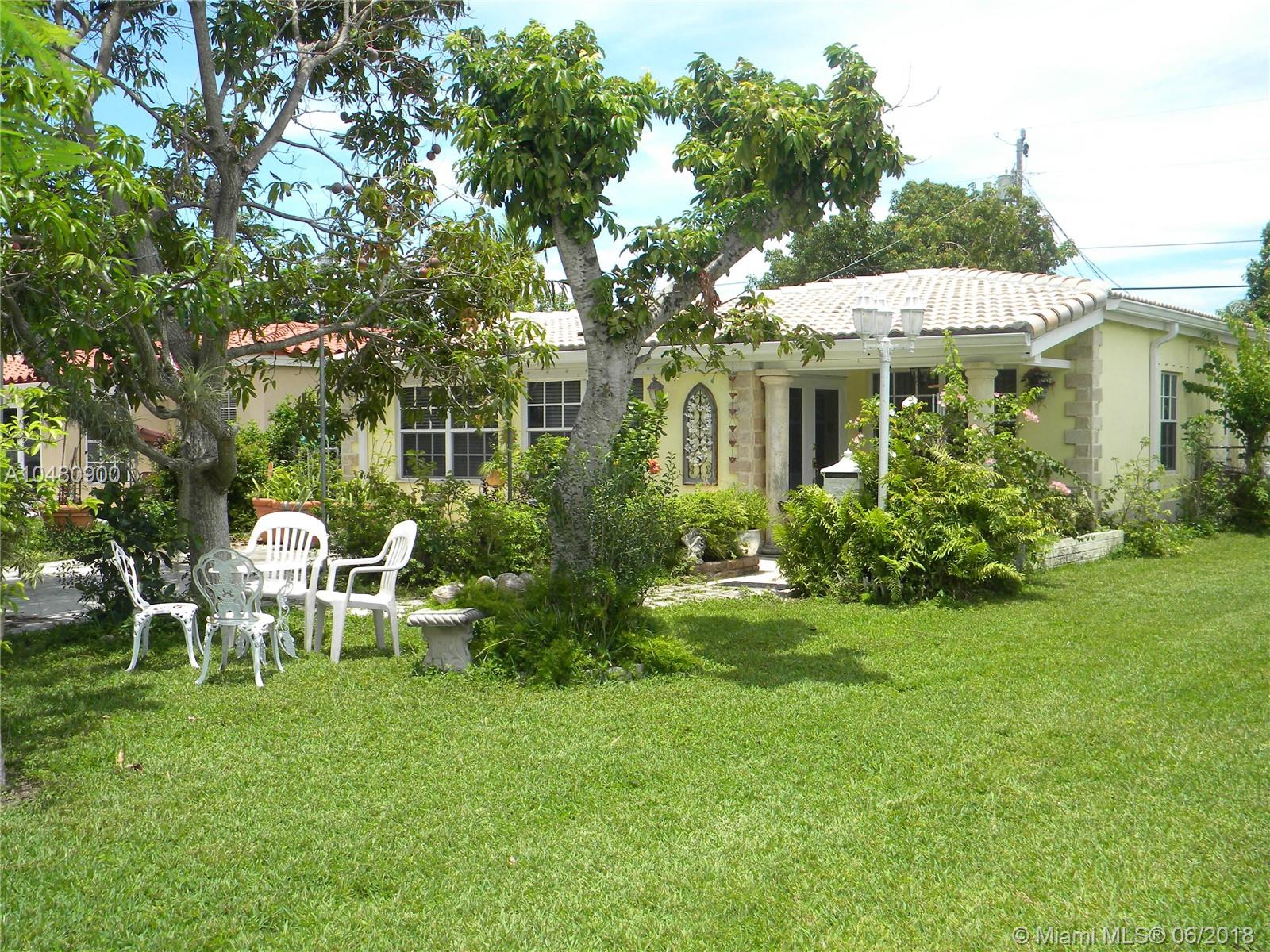 Pure charm in this very well kept 3 bedrooms, 1.5 baths home. New kitchen with european cabinets, granite countertops, stainless steel appliances and wine cooler. Tiled throughout, upgraded main bathroom, new roof, new ac, inside laundry room, large backyard with fruit trees and storage unit, huge driveway with space for at least 6 cars, hurricane shutters, new seamless gutters, termite warranty and more. Centrally located on a quiet tree lined street very close to Aventura Mall, the beach, highways, restaurants, entertainment and more. Don't miss this home. it is a true gem.