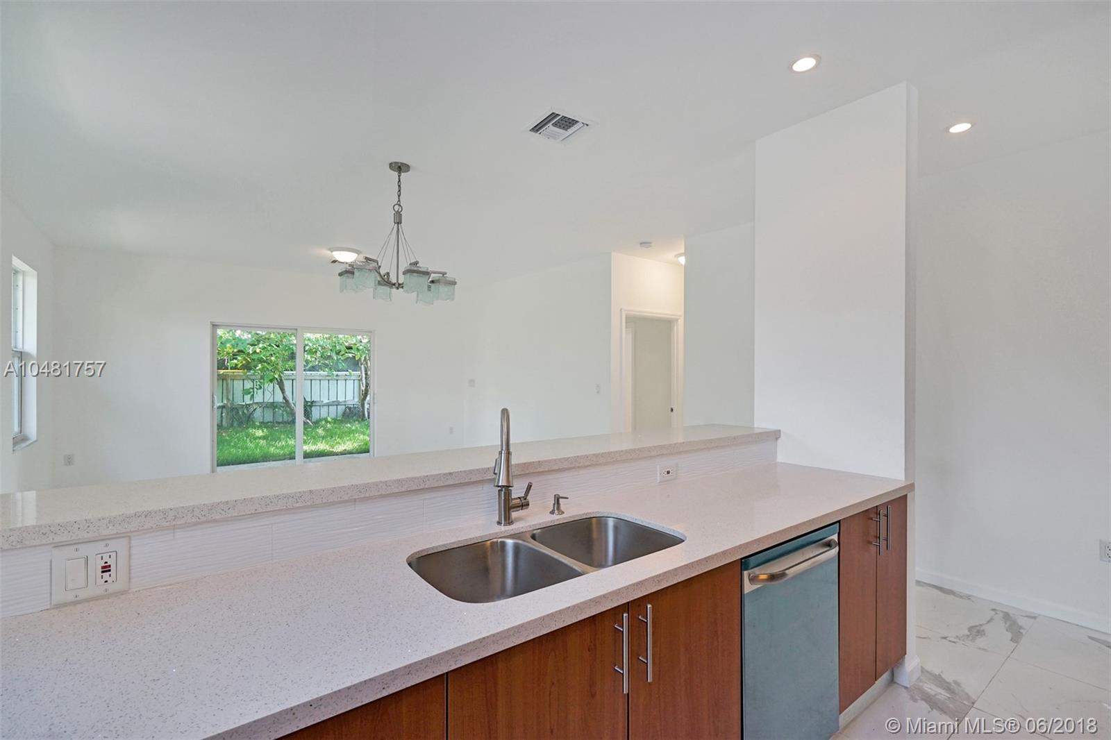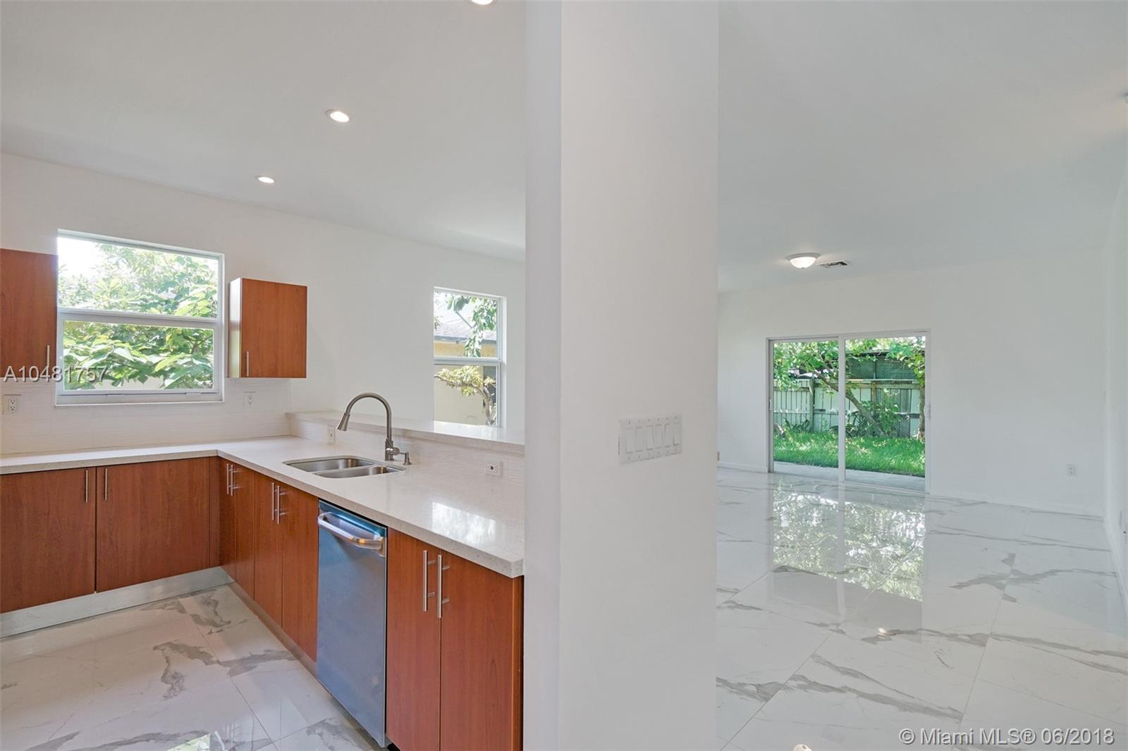Brand New Construction In Hollywood! 4 Bedrooms, 2 Bathrooms, 1,700 SqFt. Green backyard, beautiful open porch. Large windows with impact glass for a lot natural light in the rooms, porcelain floors throughout the whole house. Kitchen Counter top in quartz and cabinets in wood w LED lights, all new appliances, includes washer and dryer. Bathrooms counter tops in quartz and wood bathroom's vanity. Ceiling fans and central cooling in every room. Very clean design for all tastes. Construction: All outside walls are concrete. Interior wall has metal frames and drywall. Do not miss the opportunity to own this cozy and modern new home!