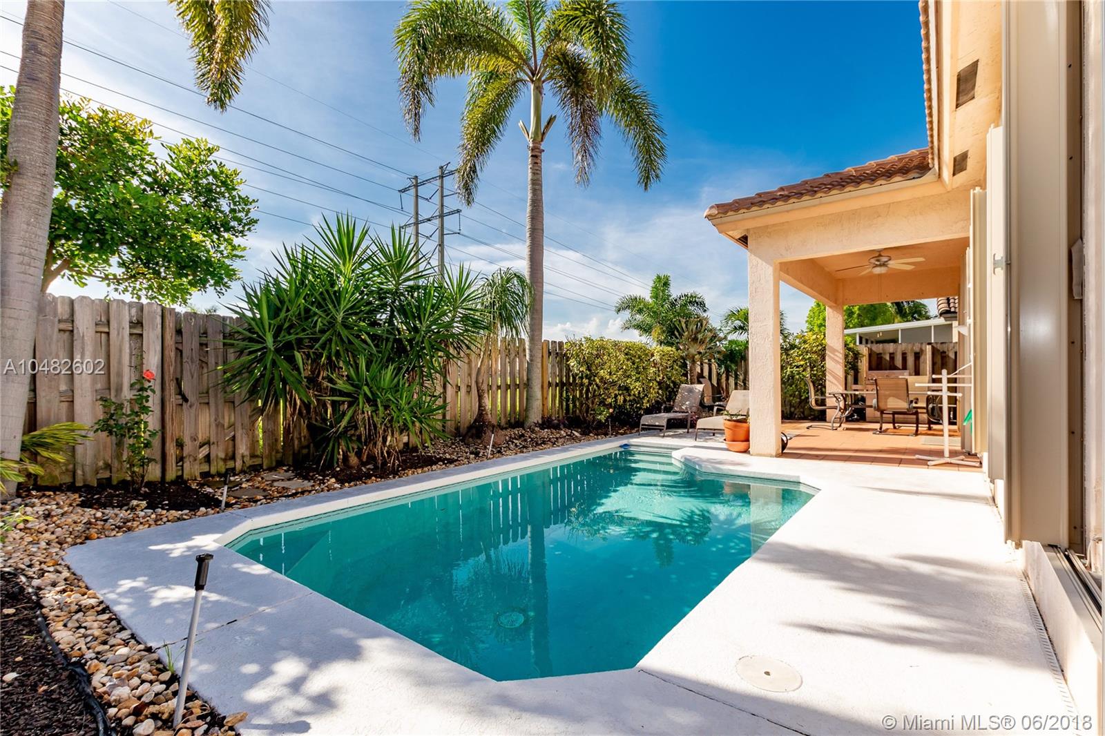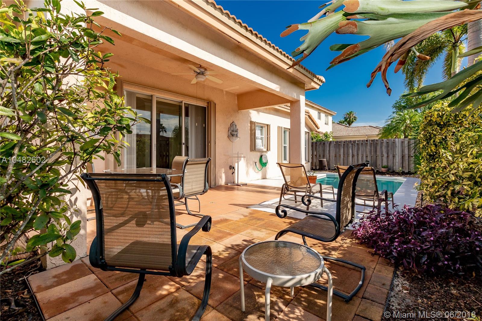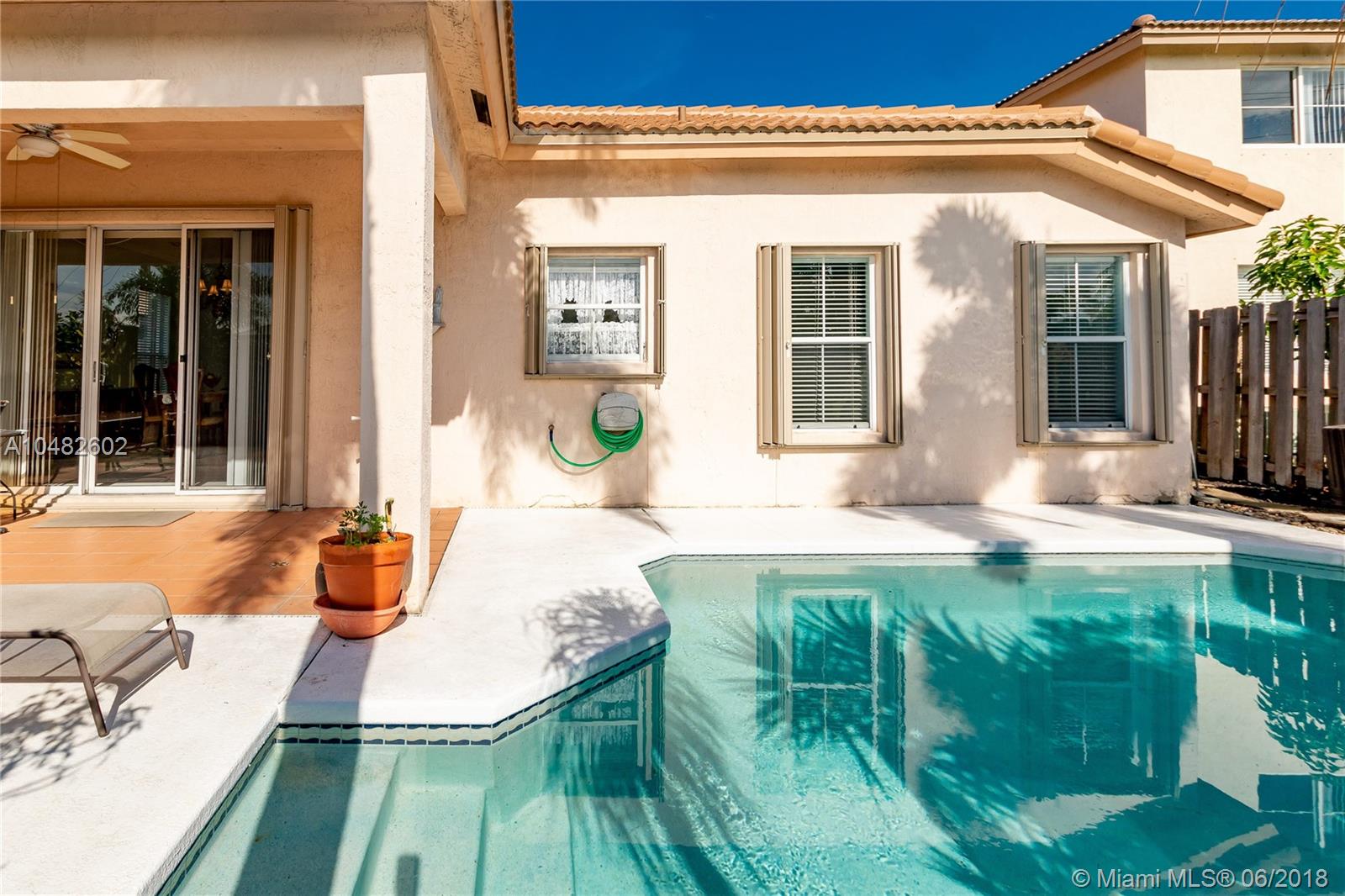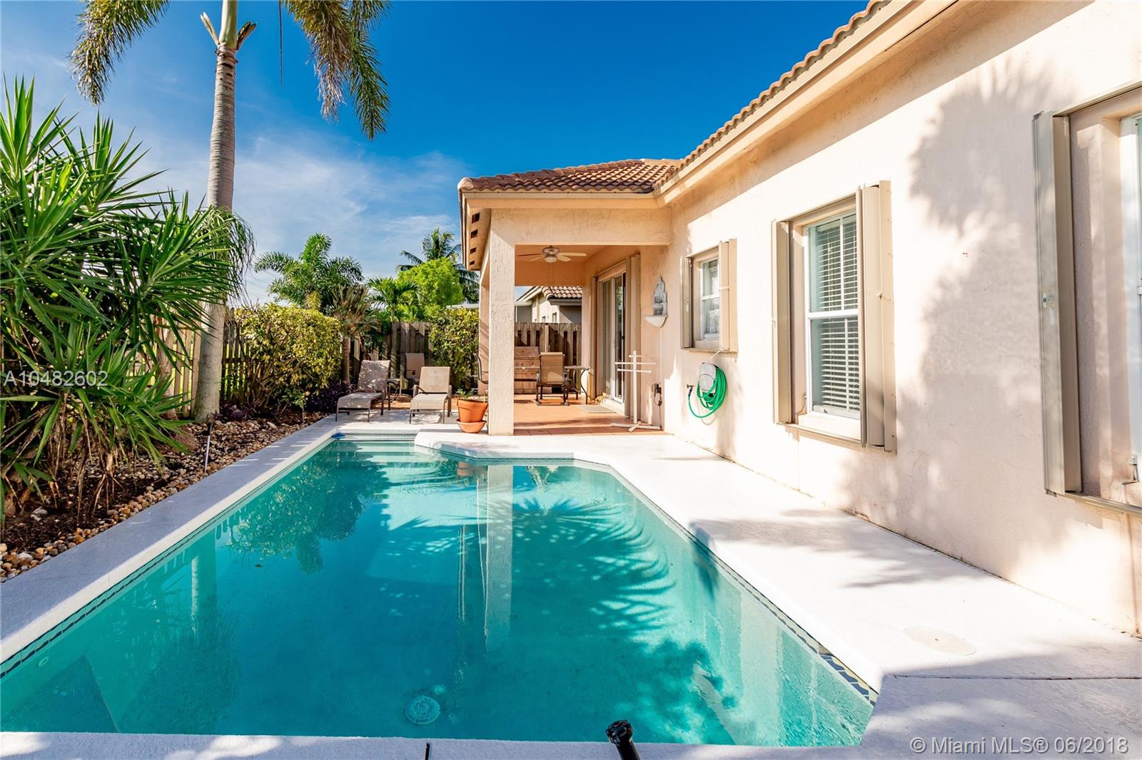 BRAND NEW ROOF ! Turn Key, Ready to move to this .3 bed/2.5 Bath POOL home with an open concept floor plan. Main areas have neutral tile flooring, backing on a green belt. The home is protected with accordion shutters. Come and enjoy the gorgeous back yard with a private pool, perfect for entertaining with covered patio and luscious landscaping. Outstanding school system. Gated community with low HOA dues.