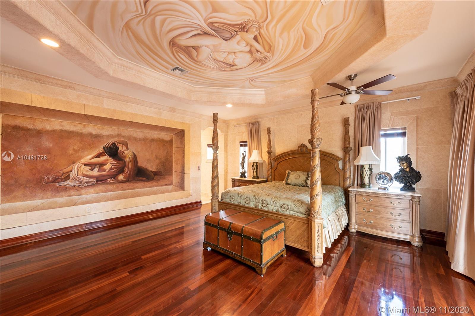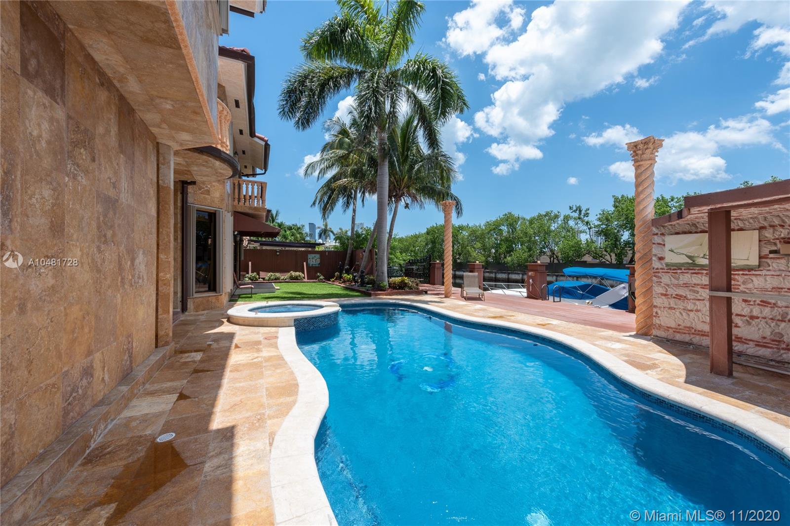 Magnificent custom Eastern Shores 2 story 80 FT on water with direct ocean access to Haulover Inlet. Best of interior/exterior materials and visual design used with nothing spared. 2 BR down and 4 BR upstairs. 1 BR downstairs currently set up as a full pub/bar atmosphere w/ walk-in chilled wine room. Theater room w/ 9 recliners. Huge master suite has office/sitting rm with large tub/spa, separate shower. Chef’s Kitchen w/ Viking gas stove & Traulson commercial cooler/fridge. Large formal dining rm. Amazing murals in place on ceilings in main living area. Custom wood work thru-out the home. Large pool/Spa patio area has covered BBQ area and maintenance free designer garden areas. Located just minutes to the beaches of Sunny Isles. Walk to new iPic theater, shopping & dining.