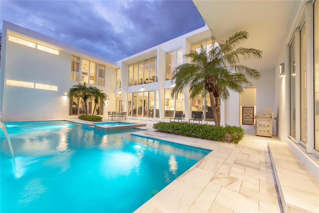 FIRST TIME ON MARKET. Prepare to live a life of sophisticated luxury in an oasis of serenity. Revolutionary architecture inspired by a sleek ultra-modern design contribute to the luxurious allure of this iconic estate. The luminous open flr plan with striking geometric lines & vol ceilings offers seamlessly integrated indoor/outdoor living spaces with flr to ceiling glass walls overlooking the center courtyard, pool & spa. 2nd flr open loft & 3rd flr expansive roof top terrace. Sq ft from architects plans.