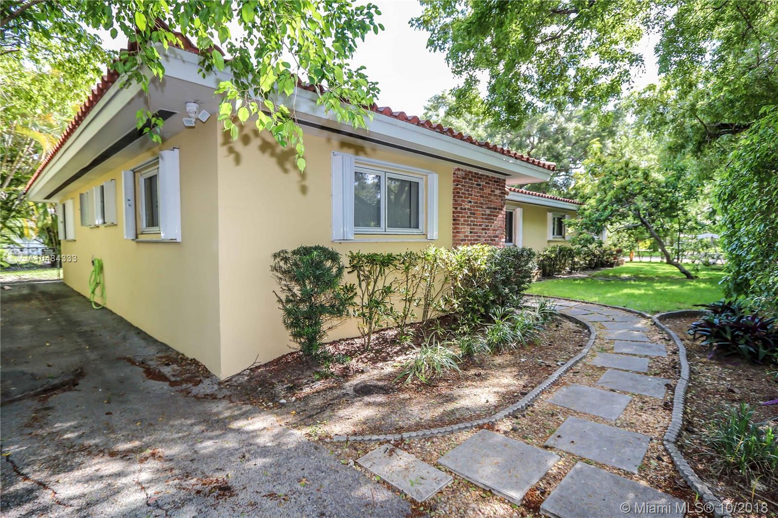 UNIQUE UPDATED ONE STORY CORNER LOT ideally located in a quiet street in the superb SOUTH GABLES surrounded by spectacular trees. Perfect for two-generation family seeking two spacious & comfortable homes side-by-side or a very easy project to convert into one single family, this home features 3,482 sf with 5 bedrooms and 4 baths over 9,900sf corner lot. Spacious living room, separate dining, updated kitchen with granite counter top & wooden cabinets. Spacious laundry, large bedrooms & screened patio with lushly landscaping. Newer barrel roof, impact windows throughout - plus accordion shutter for maximum protection-. EAST of US-1 & Walking distance to University of Miami & Metrorail. Centrally located to all of Coral Gables finest restaurants and shopping.