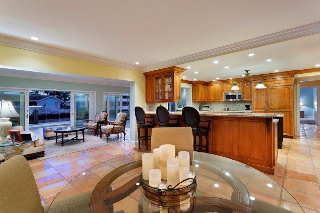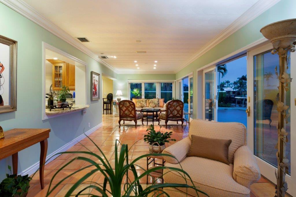 Second from the point with nice Intracoastal and boat parade views on 100 ft. of deep water. Partial impact glass. 2018 master bath with porcelain & glass tile, dark hardwood cabinetry & quartz tops. 16,000 lb. boat lift. Upgraded hardwood & granite kitchen with island. Sub-Zero, Viking, Wolf, Asko Appliances. Nice size family room with sliding doors opening to the pool deck. 2018 new tile roof. 880 ft. (per survey) of additional (high ceiling) attic space for increased living area or a 2nd master suite.