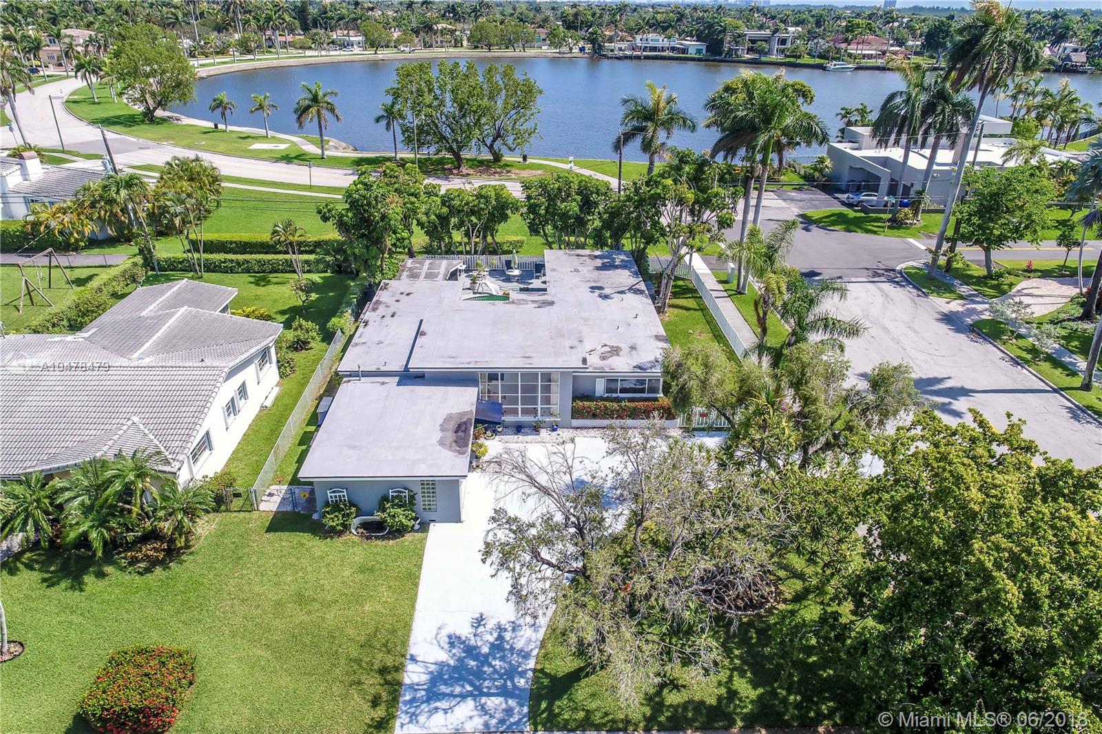 GREAT VIEWS OF NORTHLAKE FROM BACKYARD~Bright spacious 3BR, 2.5 Bath. All this and it's on a huge corner lot~Pool w/cabana bath & extra storage room. Property features beautiful lake view from the kitchen, formal dining, bedrooms and over-sized master bedroom. Great house for entertaining. Large living room with crown molding, high ceilings, bright white porcelain floors. Kitchen, quartz counter tops, durable thermofoil-cabinets~natural gas stove. Have breakfast in the eat-in breakfast nook which faces the lake. Built in kitchen desk. Screened outdoor patio. Outdoor utility shed. Natural gas hot-water heater and dryer and BBQ hookup~Garage converted to office can easily convert back Property is close to the beach & Downtown Hollywood.