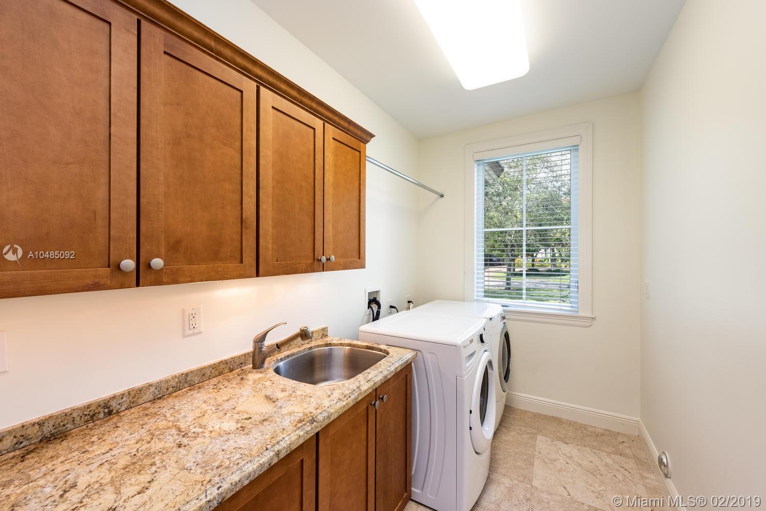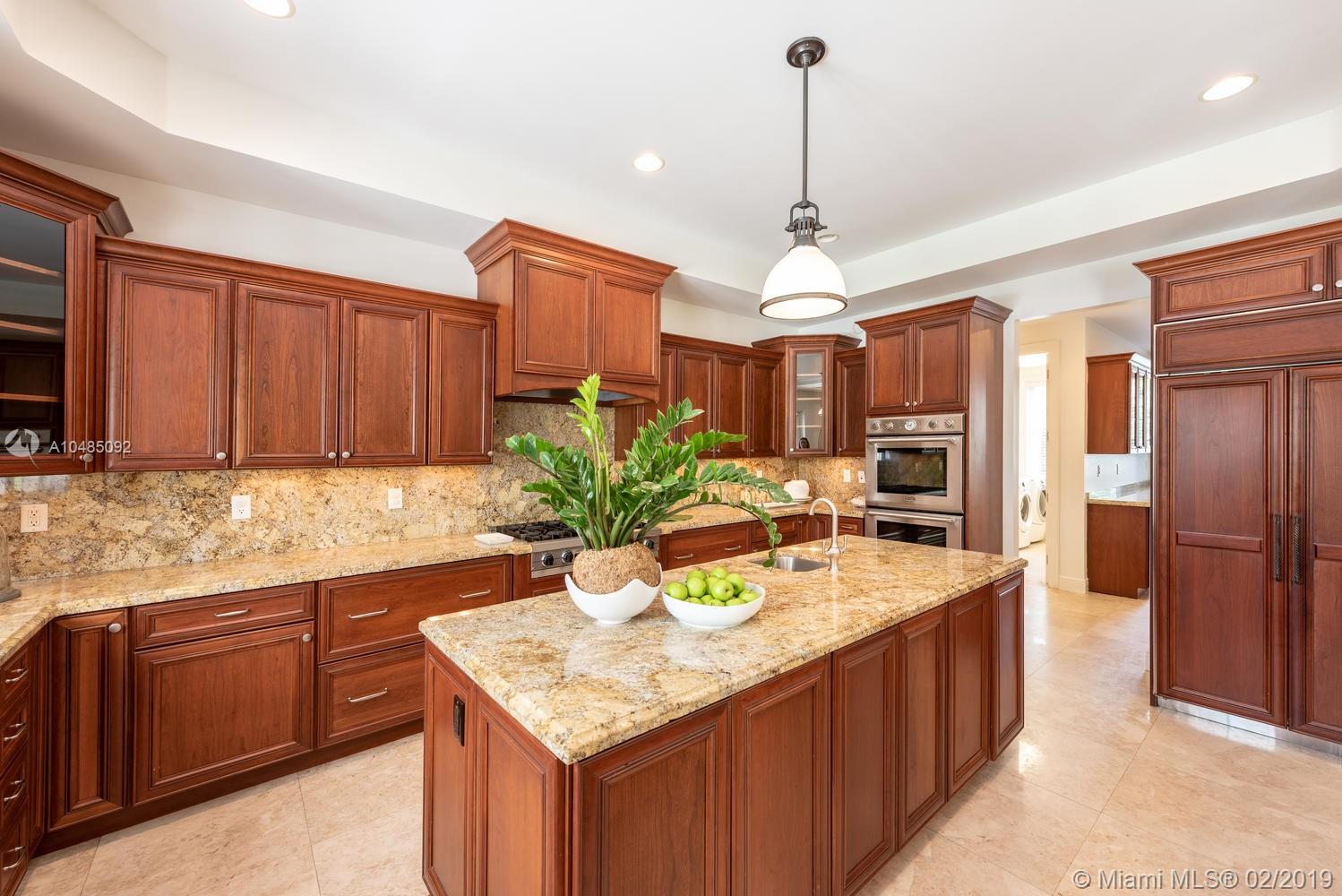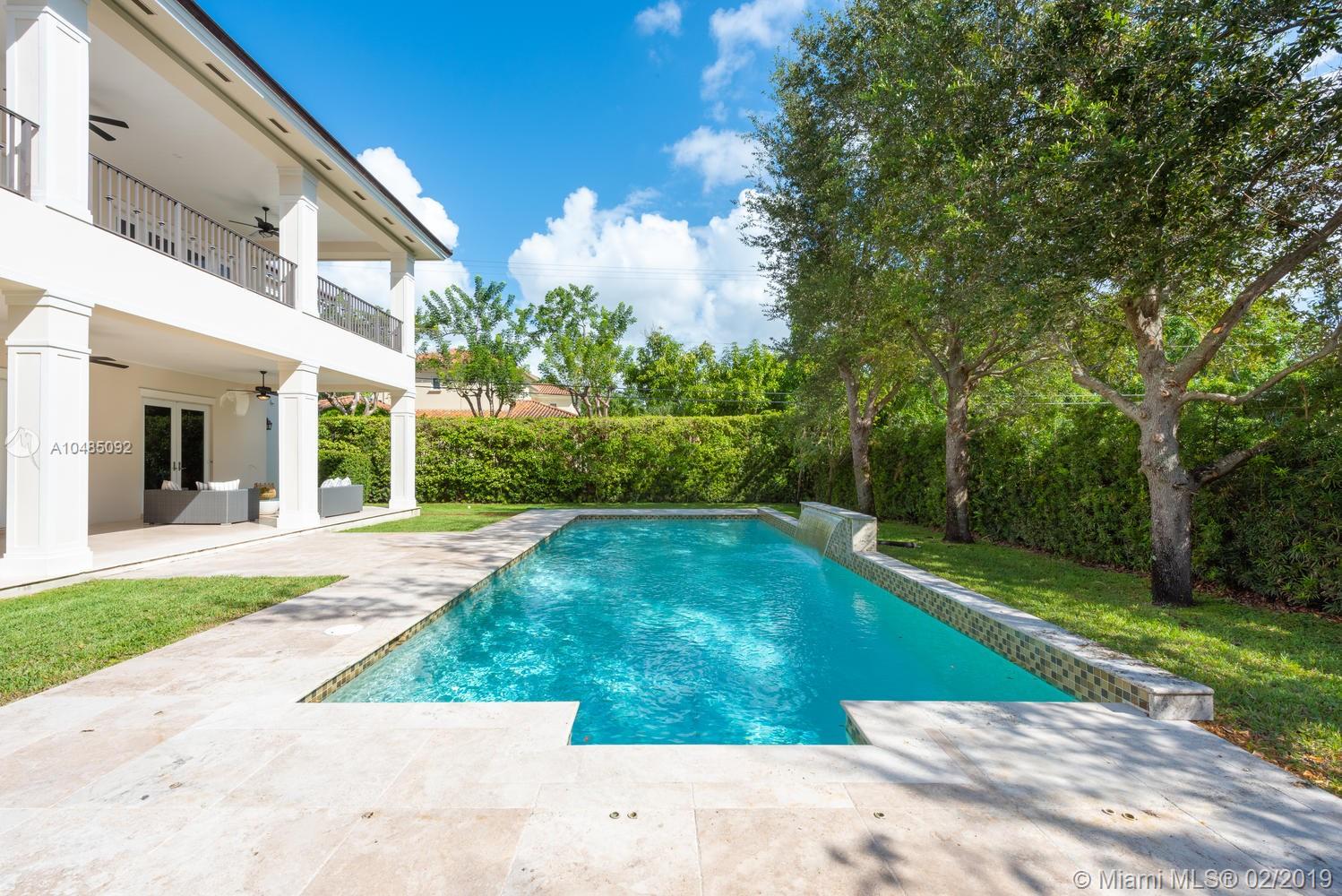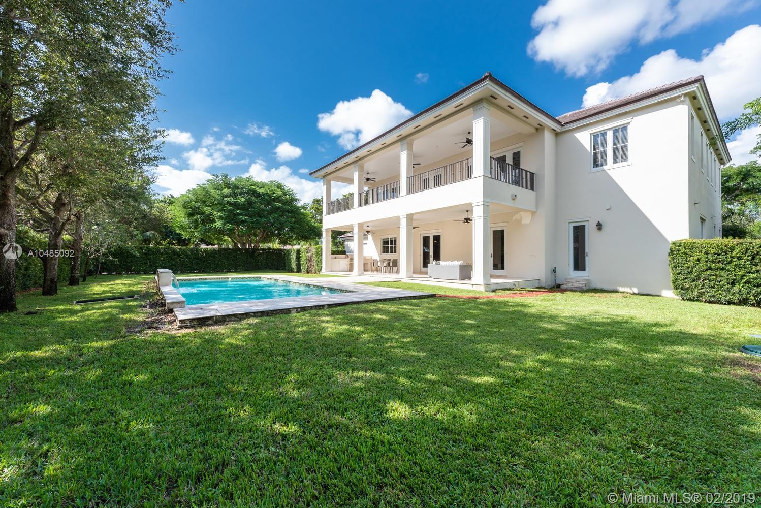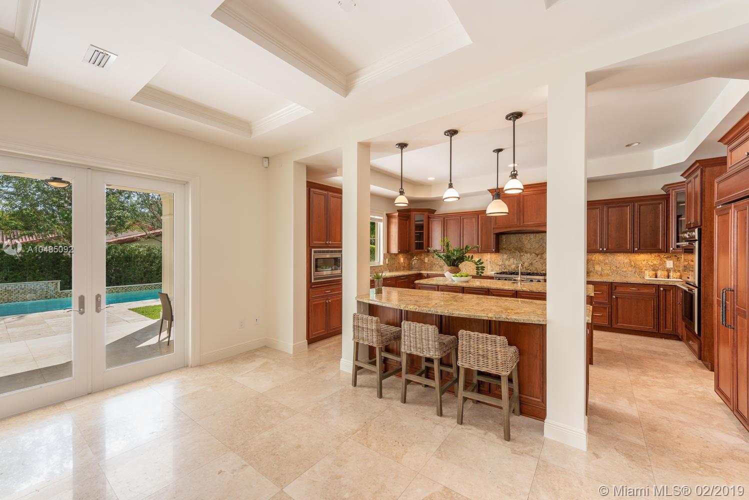 Stately 5 bedroom home w/ 5,000 SF of living area on 16,757 SF lot in sought-after North Pinecrest. Features formal living rm & dining rm, great room adjacent to kitchen, gas fireplace, wet bar & recessed lighting. Gourmet kitchen w/ granite countertops, wood cabinetry & top of the line SS appliances. Plenty of storage with butler’s pantry & walk-in pantry. Beautiful marble staircase leads to the master bedroom w/ separate dressing area, large walk-in closet & private terrace. Master bath has a separate tub and shower & two sinks. All bedrooms w/ ensuite baths & spacious closets. Two of the three bedrooms upstairs have private terrace. Pool, covered patio & summer kitchen for entertaining. 3-car gar, generator, high impact windows & doors. Downstairs bedroom w/walk in closet & cabana bath.