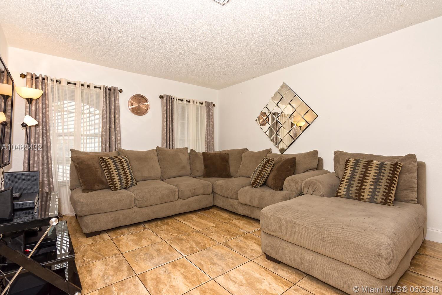 Charming starter home with serene lagoon view in the community of Hampshire Homes. Located just east of Palm Avenue and south of Miramar Parkway, it features large porcelain tile throughout the first floor and carpet on stair and second floor, honey maple wood cabinets and granite finish - Formica counter tops in kitchen, and updated bathrooms. Spacious master with walking closet and two generously comfortable guest bedrooms upstairs. Recently painted exterior and driveway! Enjoy family barbecues in fenced back yard overlooking the water or quite afternoons sitting in the wrap around porch. Come see it soon!