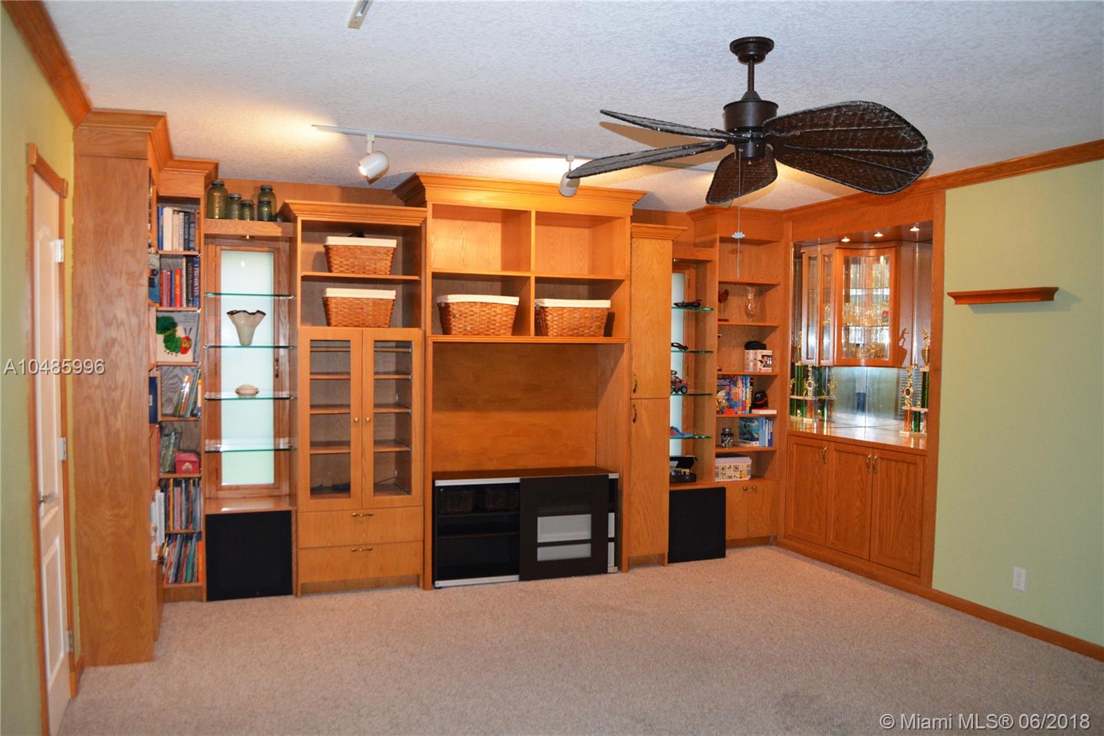 Beautiful, 4 bedroom/3 bath house on large lot in Jacaranda Country Club. French doors open out to the patio from the living room, master bedroom and family room. The upgraded kitchen has cherry cabinets with dark granite counter tops, GE refrigerator, Kohler sink, Miele dishwasher, Wolfe stove top and Kitchen Aid double ovens. Eat in kitchen area with a table, bench and chairs. Separate laundry room (washer/dryer included) with pantry. Family room has custom built in book shelves and TV cabinet along with a built in bar. Huge backyard overlooks the golf course, with resurfaced pool/spa, the large patio. Accordion shutters, sprinklers, alarm, 2 AC Units and 2 car-garage. Great Plantation schools.