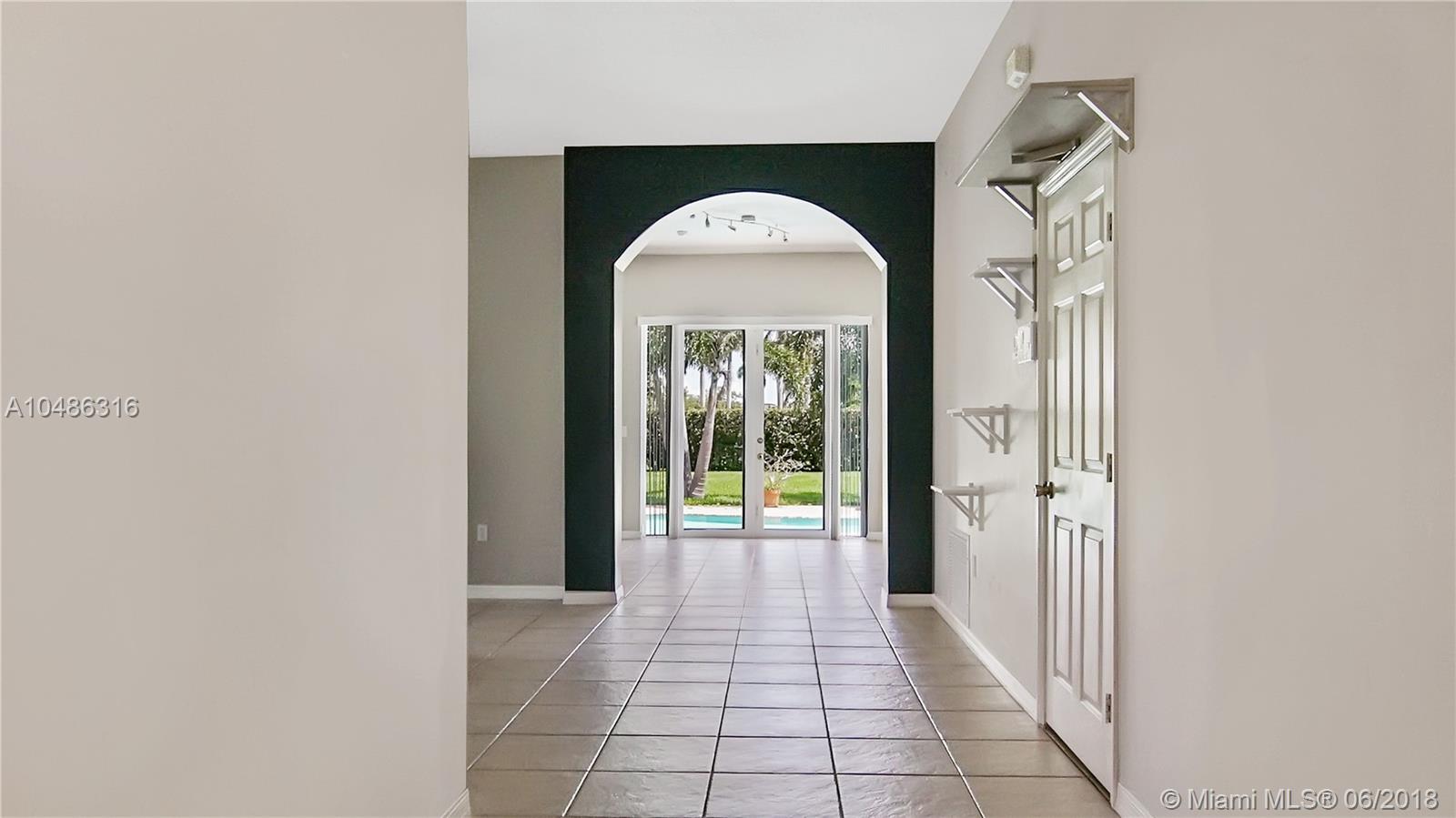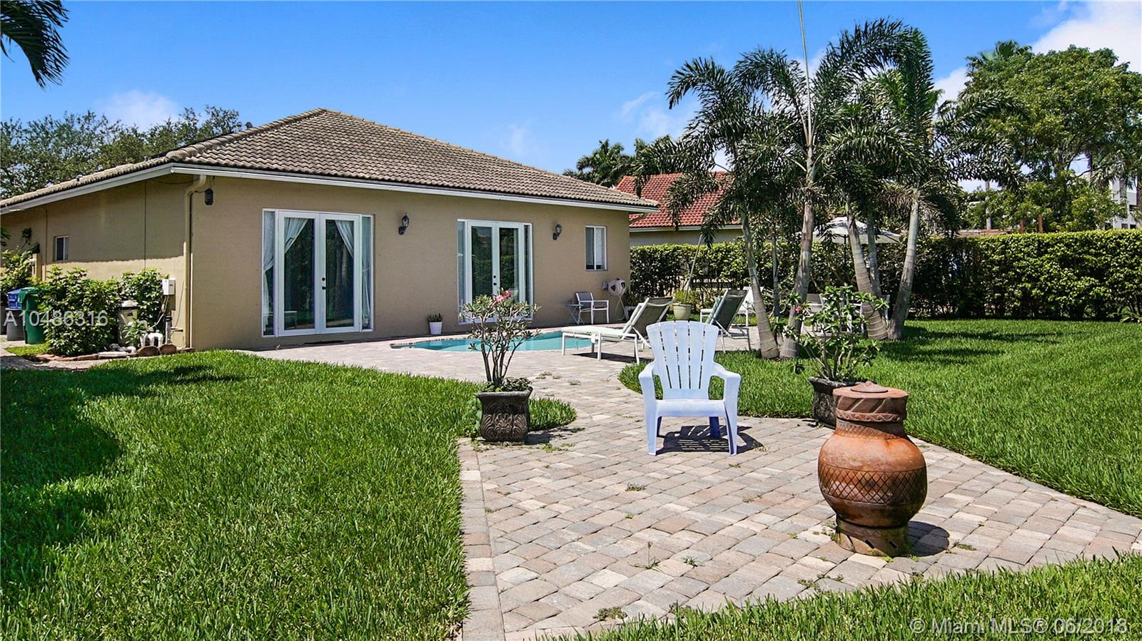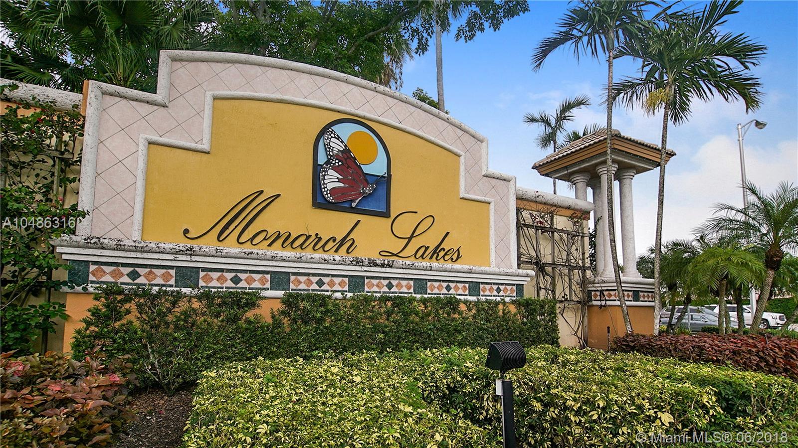 Beautiful one story home on one of the largest lots in Monarch Lakes, waterfront & no rear neighbor, mango tree out back! Salt water capable Pool; large paved patio with pavers extending out towards lake, pavers extend on the east side to the front of the home; solar water heater; A.C. 2 years new; 3 bedroom split floor plan. Master has bamboo floors, walk in closet with built ins, dual vanity, tub and separate shower. Guest rooms w/engineered wood; tile through out main areas. Master bedroom and kitchen area open up to the pool with French doors. High ceilings. Separate laundry room! Located in a cul-de-sac. Lots of light! Gated community. Walking distance to elementary school, shopping and restaurants, yet tucked away in a quiet gated subdivision! (water frontage unk)