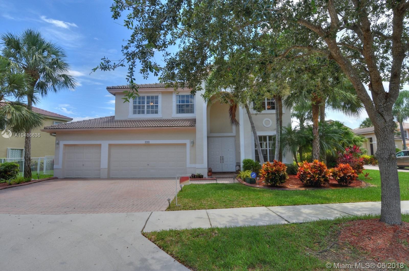 Weston - Emerald Estates, large waterfront lot with plenty of room to build a pool, 5 bedrooms, 3 bathrooms, plus a converted large playroom/office or guest room, tile and wood flooring throughout, recently painted, 42 inch kitchen cabinetry, new appliances, granite top, move in ready, pre-inspected home. Maintenance includes basic cable, security, landscaping and irrigation, guarded gate entry, community pool and gym, common areas, Close to Griffin road and I-75. Additional photos will be coming soon. Easy to show!