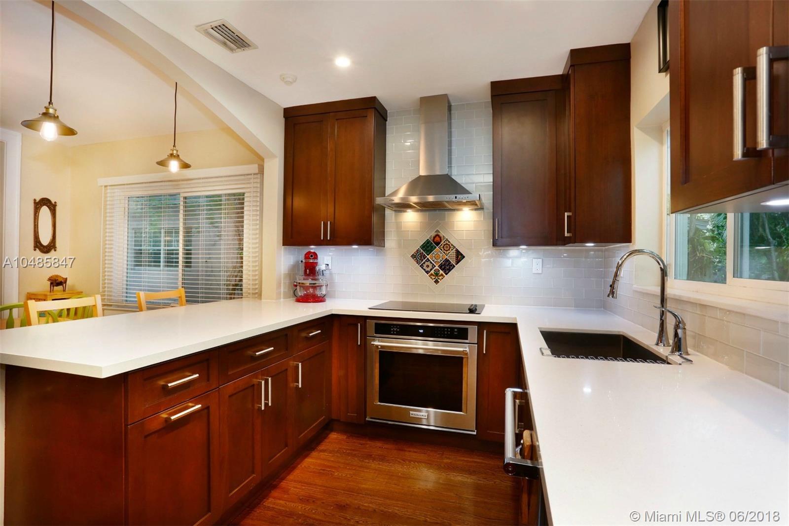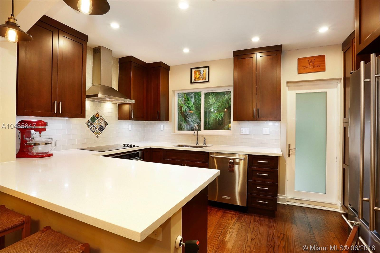 This 1926 Old Spanish charmer on a quiet tree-lined street offers a bright future for those who value architecture, tasteful updates, good schools, and an unbeatable location minutes from all things Coral Gables. A spacious front porch with pecky cypress ceilings greets you and sets the tone for what’s to come. Step inside and you’ll find a grand living room with high ceilings, walnut-stained wood floors, a wood-burning fireplace, large impact-resistant windows, plentiful natural light, an open eat-in kitchen with custom cabinetry, quartz counter tops, Kitchen Aid and Jenn-Air stainless steel appliances, new HVAC, 2 bedrooms, 2 baths, a den that offers versatility as a home office, baby nursery or additional closet space, and an indoor laundry/utility room. Call us to see this home today!