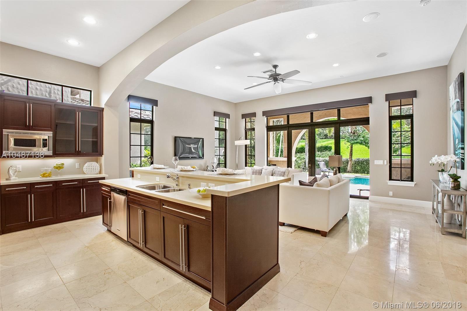 Parkland Golf Executive Home; From the grand entrance featuring a welcoming garden and designer double height wood entry doors you enter into this hidden gem. Upon entering the Art Gallery Foyer guides all guests into this well designed floor plan. The residence features 4 bedrooms (one currently used as an office), volume ceilings, marble floors through out the main areas and solid wood floors in 3 of the 4 bedrooms. Formal Dining Room, Open concept kitchen and great room which overlooks the outdoor pool, covered porch located with no neighbors behind the home. The kitchen is spacious with a 42" cooktop, quartz counter tops, bar top eating area and pantry. Well maintained. Impact Resistant Windows and Doors; per Developer Plans; Sought after parkland schools.
