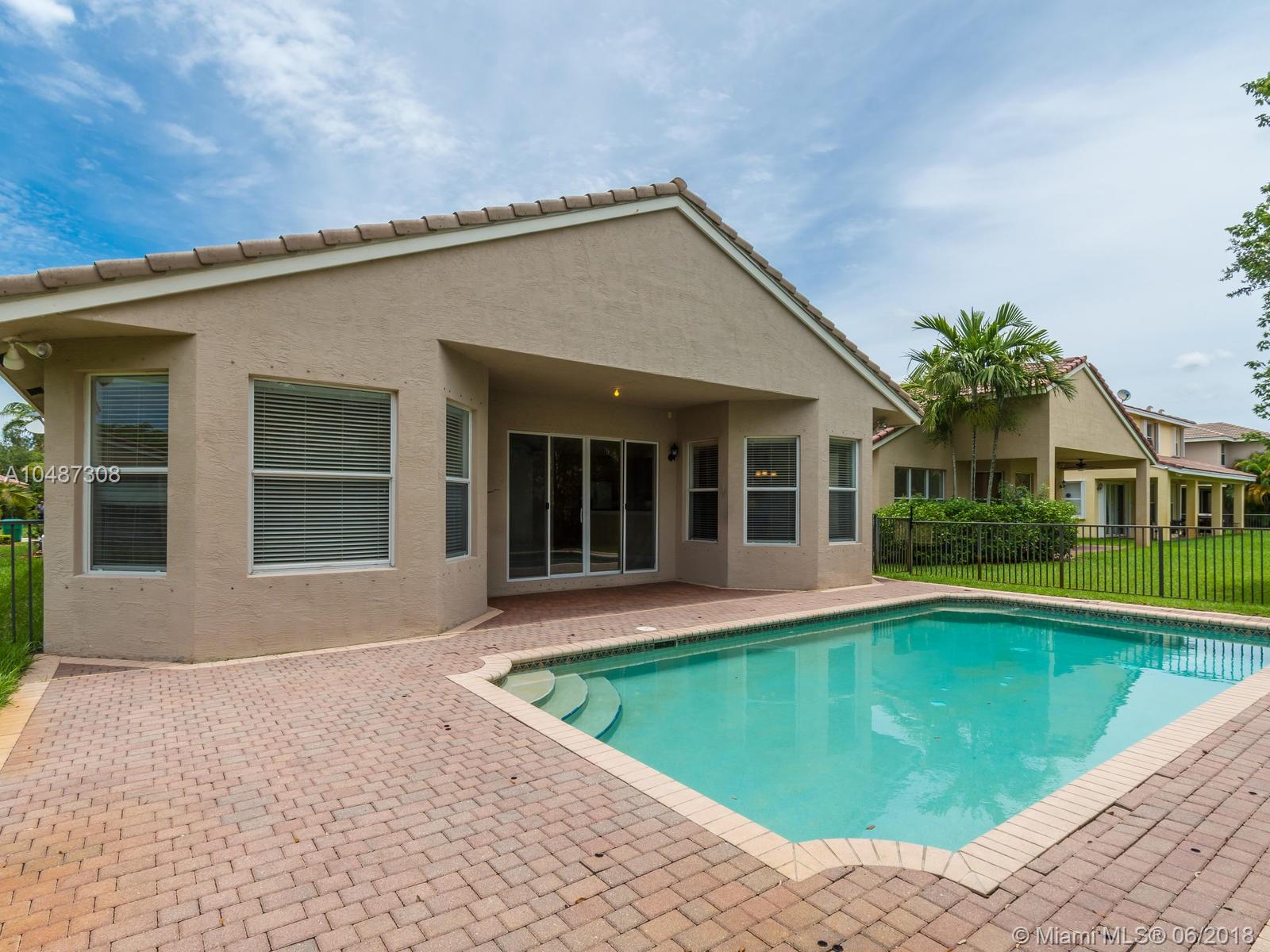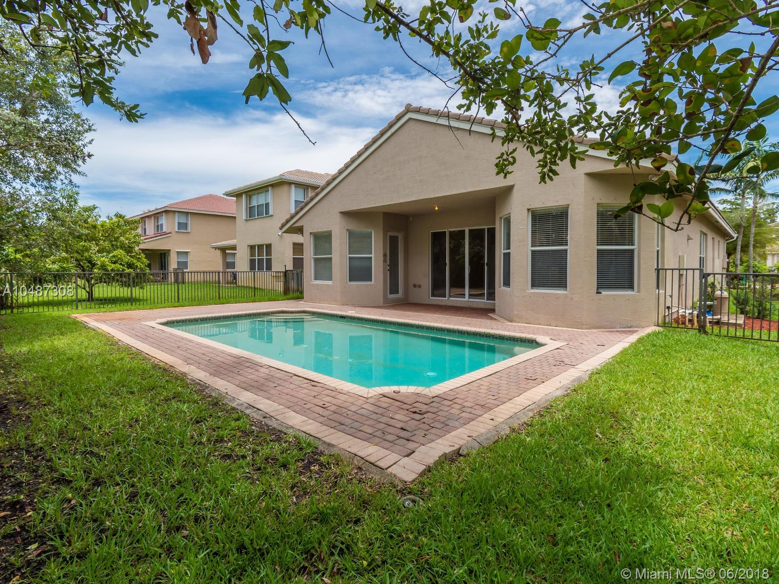 **DESIRED SUZANNA MODEL WITH POOL**4 BEDROOMS, 3 FULL BATHROOMS, 2 CAR GARAGE. PAVER DRIVEWAY HEAD TO DOUBLE DOOR MAIN ENTTRANCE. TRIPLE SPLIT FLOOR PLAN. 10' HIGH CELLINGS. ELEGANT CROWN MOLDING ALL AROUND. DIAGONAL TILE IN SOCIAL AREAS AND BATHROOMS;LAMINATED WOOD FLOORING IN BEDROOMS. UPGRADED WOOD CABINETS IN KITCHEN WITH BLACK GRANITE AND SS APPLIANCES. BREAKFAST NOOK WITH POOL VIEW. FORMAL LIVING AND DINING. OPEN FAMILY ROOM HEAD TO PAVERED POOL AREA. FENCED PATIO, PERFECT FOR FAMILY ENTERTAINTMENT.KIDS FENCE FOR POOL AT THE GARAGE. SPACIOUS MASTER ROOM WITH TWO WALKING CALIFORNIA CLOSETS.ROMAN TUB AT MASTER BATHROOM.SEPARATE SHOWER WITH TEMP GLASS DOOR.HER AND HIS SINK. AND MUCH MORE..CLUB HOUSE WITH TENNIS COURTS, GYM,PLAY GROUND, BASKETBALL.GUARD GATE 24/7.COME!, YOU WILL LOVE IT!
