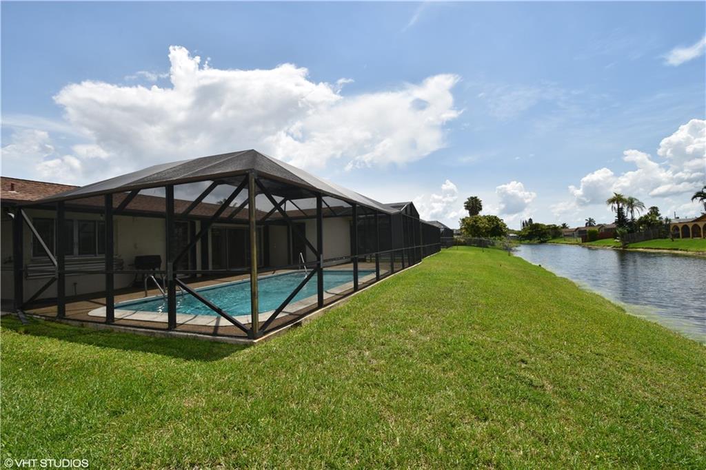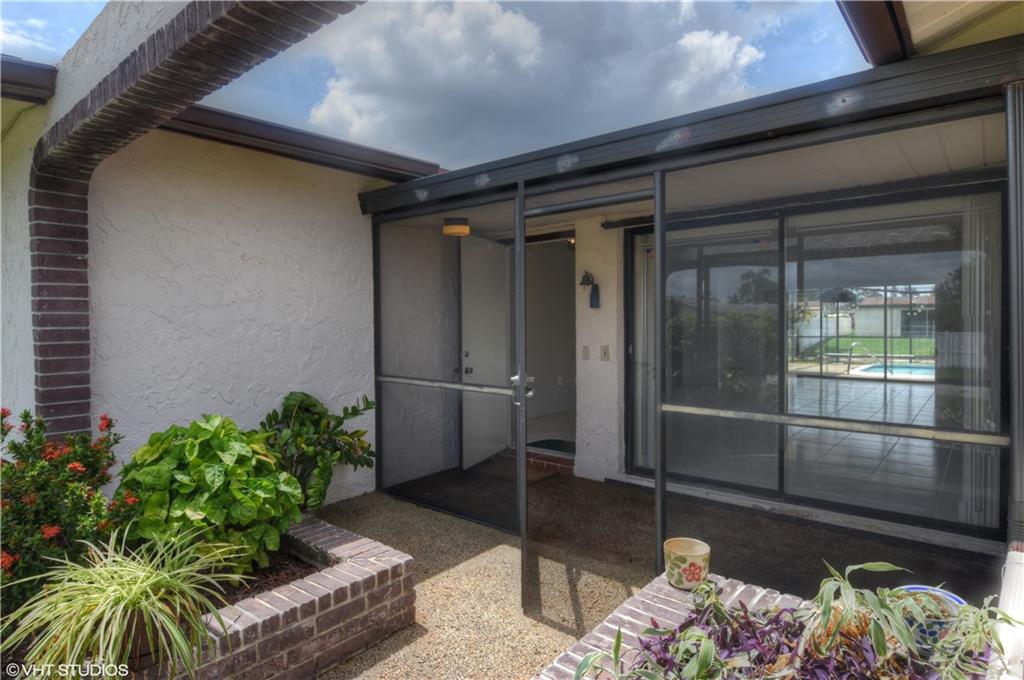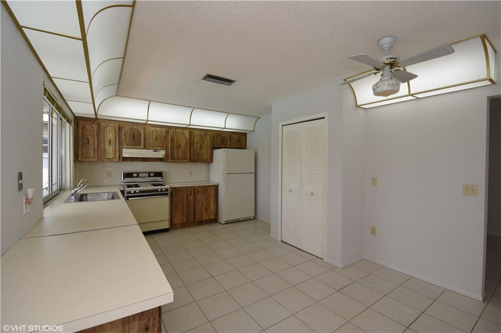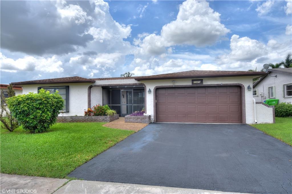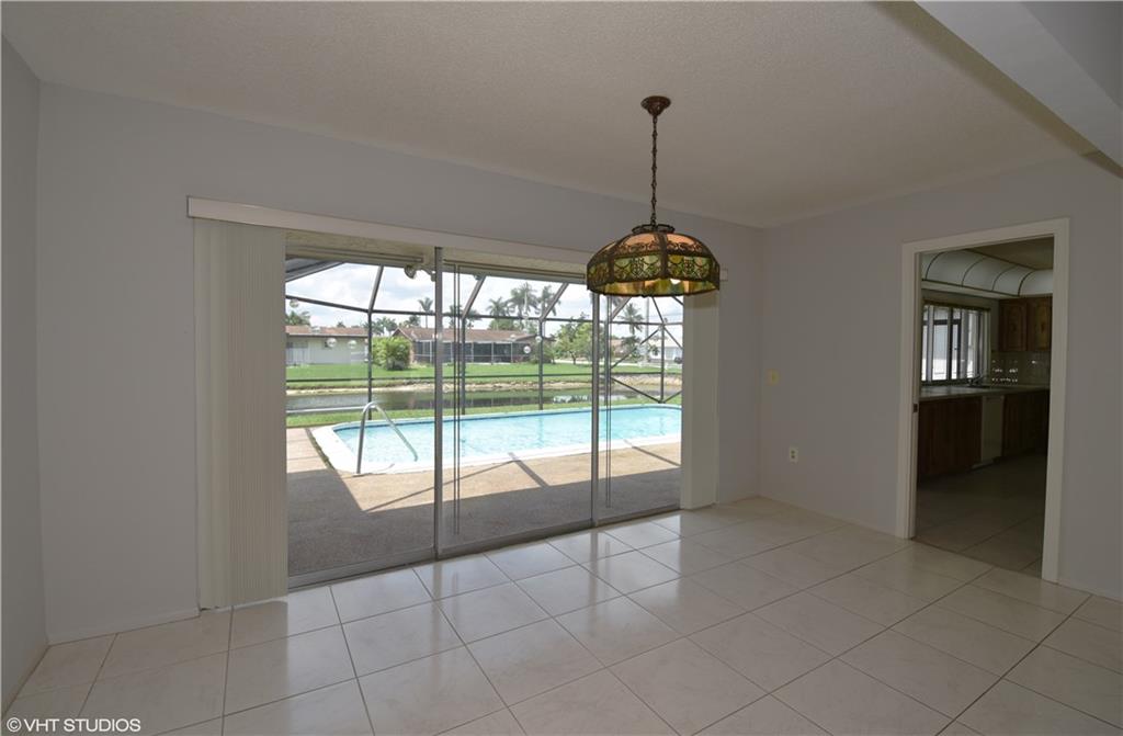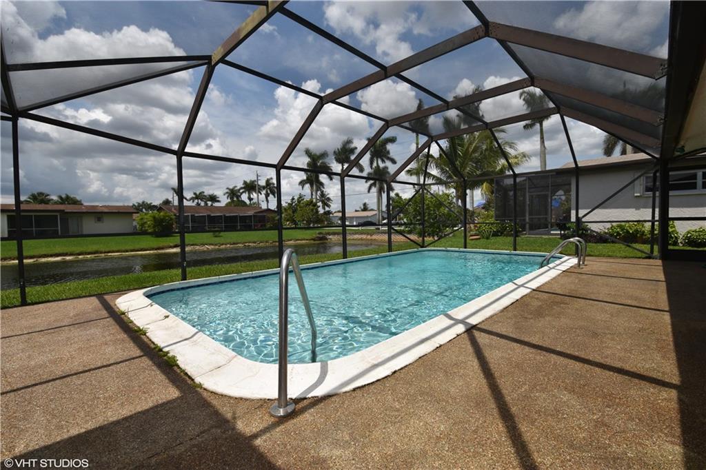 This charming 3 bedroom + large den, 2 bath, 2 car garage pool home is located in the Windward Isle section of Sunrise Golf Village. Freshly painted, spacious open floor plan, tile throughout living areas, screened in pool w/ extended patio & pretty water views. The eat in kitchen is huge & equipped w/ lots of cabinet space, a gas stove & a patio pass thru window, existing gas line to outdoor grill, hurricane shutters, roof installed 2006, a/c installed 2014. Great family home on a prime lot!