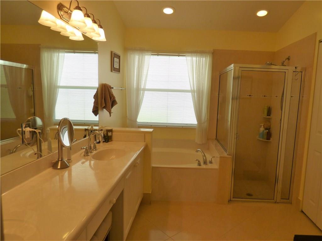 FANTASTIC 1STORY HOME WITH 3BED, 2BATH, 2CAR GARAGE AND WATER VIEWS. VERY WELL KEPT. 24 HRS GARD GATE COMMUNITY. CERAMIC FLOORS IN LIVING AREAS & LAMINATE FLOORS IN BEDROOMS, UPGRADED KITCHEN CABINETS W/S-STEEL APPLIANCES, RENOVATED BATHROOMS, COLONIAL SHUTTERS, VAULTED CEILINGS, BAY WINDOW, 1YR OLD A/C, DECORATORS ITEMS IN WALLS & WINDOWS, RAIN GUTTERS & EXTENDED COVERED PATIO AREA & PAVERS. NICE BACKYARD, FENCED AND WITH ROOM FOR A POOL, FRUIT TREES. SHOWS FANTASTIC, GREAT PROPERTY!