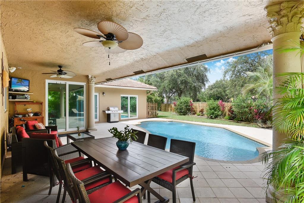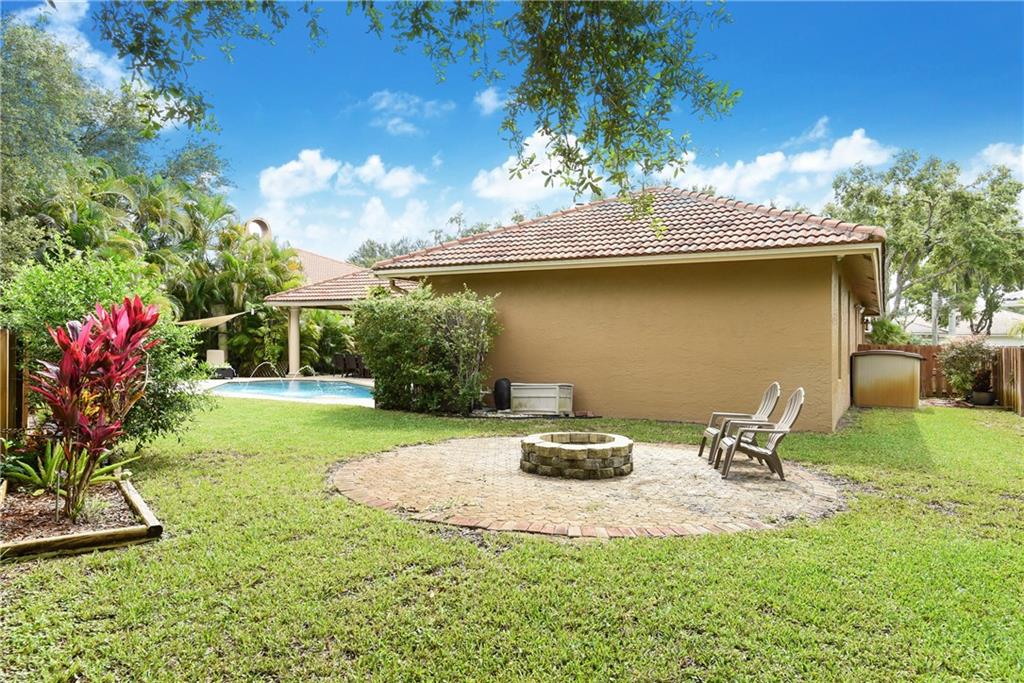 Lovely, updated home in Turtle Run! Desirable floor plan w/ wood burning fireplace feature. Situated on an oversized, fenced lot you will find jasmine bushes, mango tree, firepit area, resurfaced pool w/ new LED light, jets, salt water system & child safety fence. Over the past 5 years the home has received the following NEW items: roof, impact windows & doors, garage door, A/C unit, water heater, guest bdrms floors & paint, window treatments, irrigation system, exterior paint, majority of appliances, etc