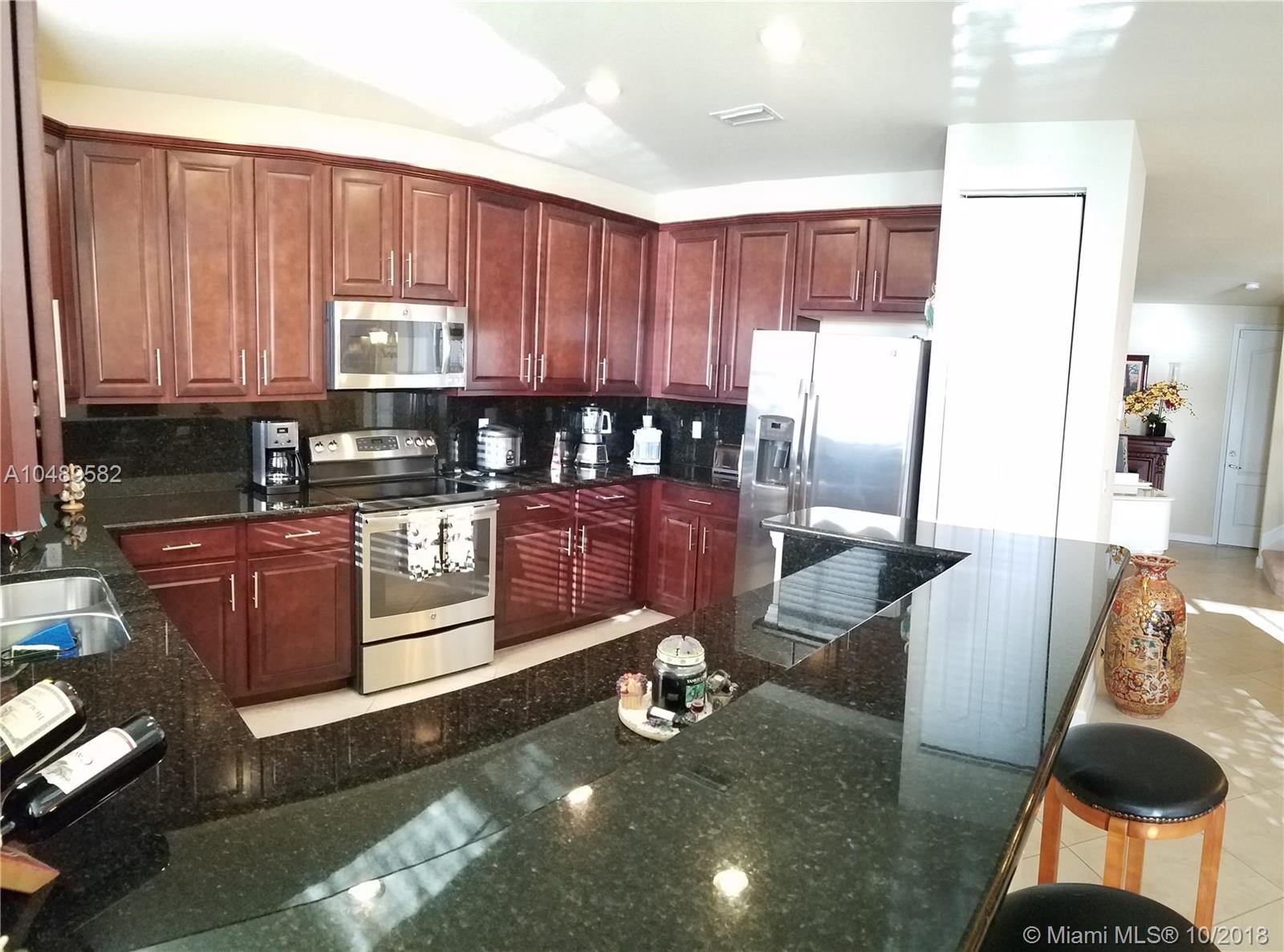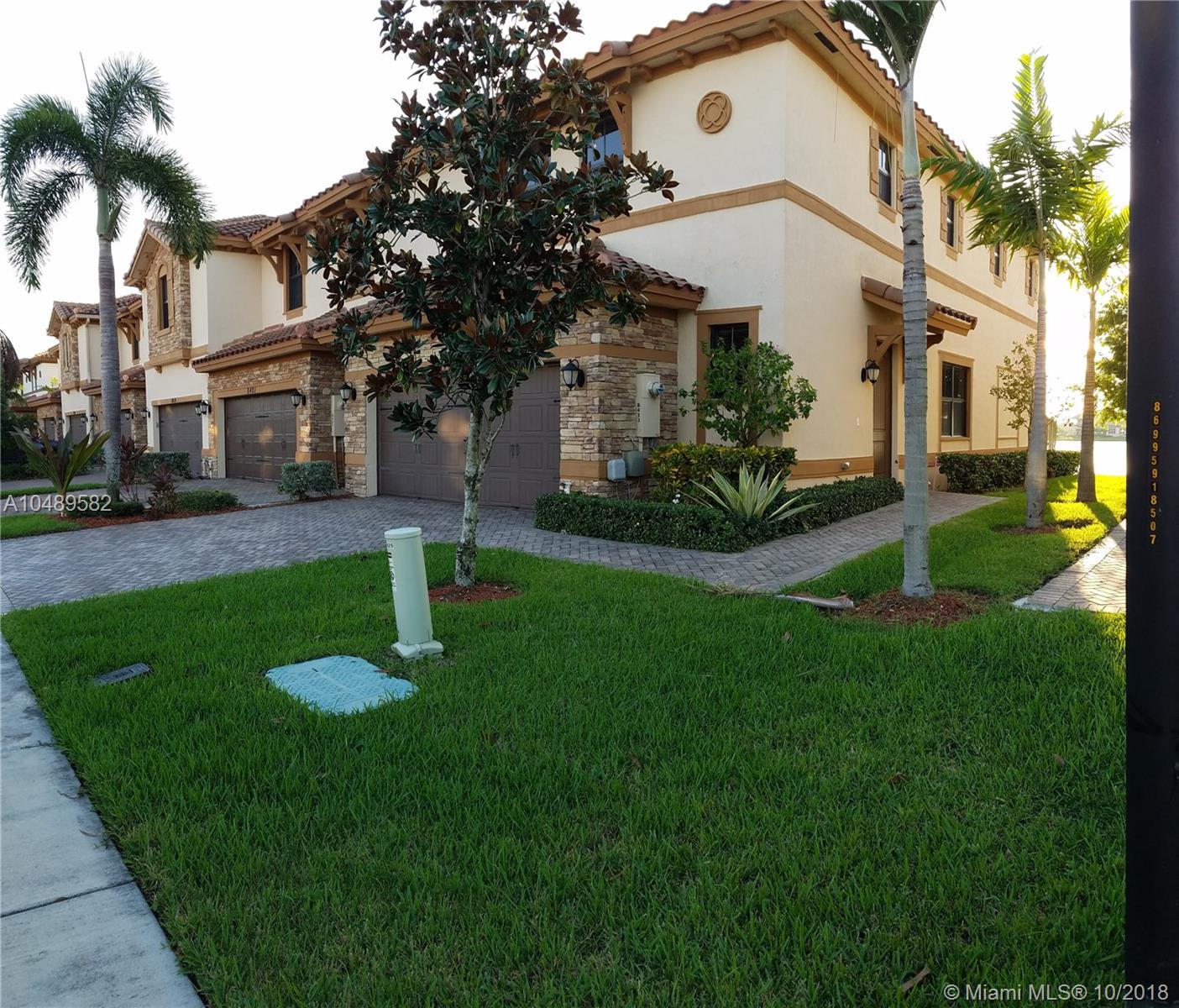 Location, Location, Location!! you will find this stunning 3 bedroom/2.5 bath/2 car garage townhouse with $20,000 in upgrades, located on a beautiful corner lake view lot. Features include: Upgraded neutral color 20x20 ceramic tile lay diagonally, dark upgraded 42" kitchen cabinets w/crown molding, granite counter top and granite full back splash, GE SS appliances, hurricane impacted windows and doors, upgraded cabinets and granite counter tops in master bathroom, large laundry room upstairs. Luxury resort living with clubhouse that includes playgrounds, splash park, resort style pool, full gym with saunas and locker rooms, office center, bar, basketball courts and tennis courts. 24 hr. manned gate. Enjoy breathtaking sunsets!! Once you see this property, you will know this is home!