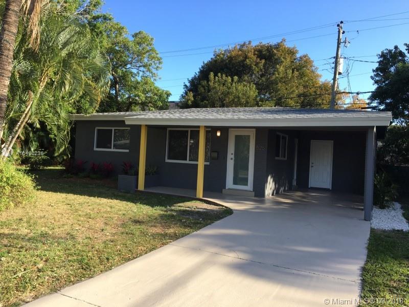 Beautiful newly renovated 2 beds 1 bath home with new high impact windows, updated kitchen and bath. Home has wood floors throughout, attached carport with tongue and groove ceilings. Home sits on a corner lot in quiet cul-de-sac with huge yard. Kitchen has quartz counter tops, stainless steel appliances and new cabinetry. Minutes to beaches, Wilton Manor, Downtown and Galleria mall. Great location!