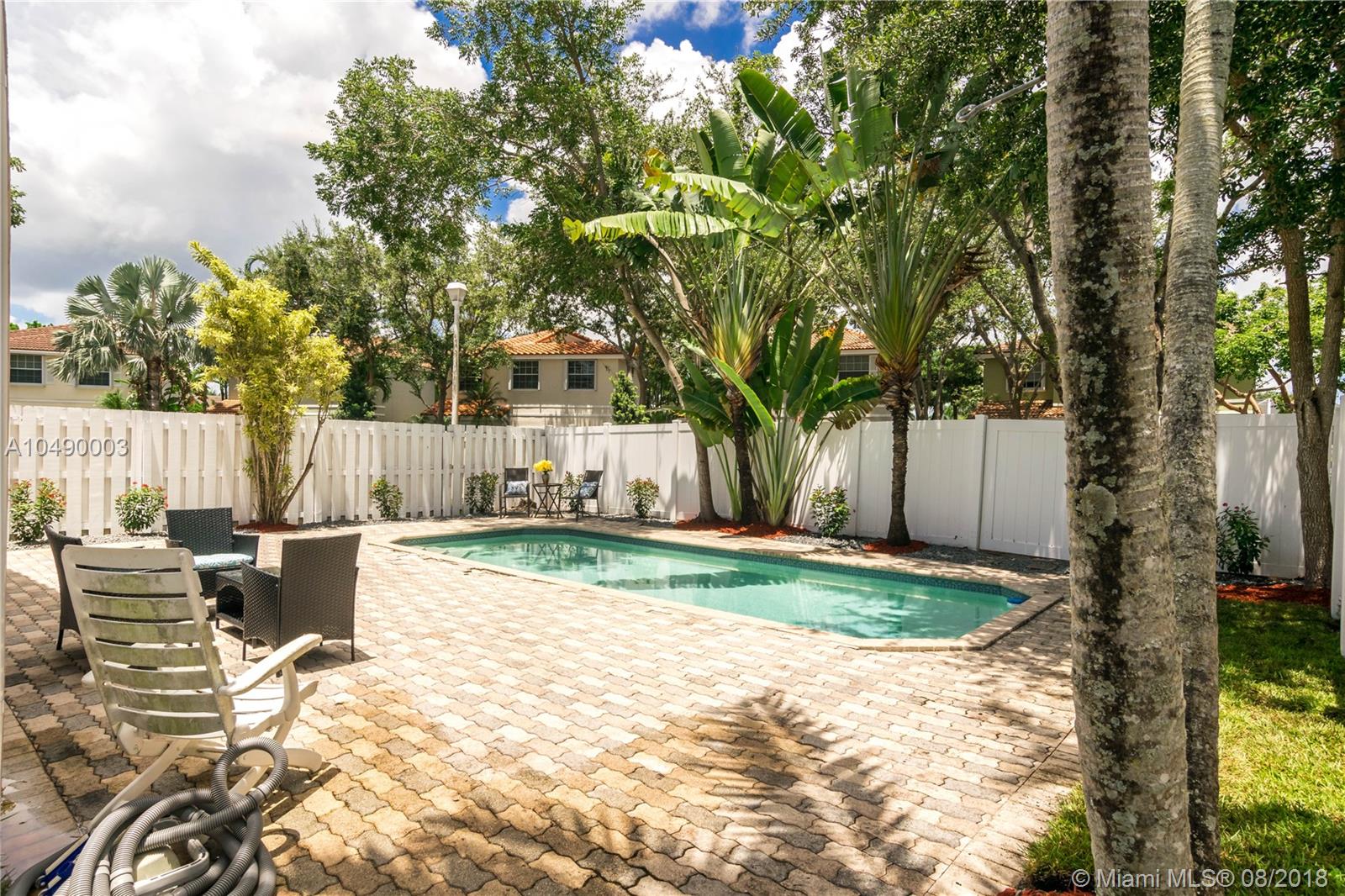 Superb remodeled 4 BR, 2 Bath pool single family home in gated Emerald Isles of Weston. Not huge square foot-wise but feels much bigger via super design, layout. Double sets of sliding glass doors open to tropical paradise, fully fenced yard, no neighbors behind, your own private pool. Just competed remodeling the master suite-new new wood-look tile plank flooring, fully remodeled master bath. Kitchen was already remodeled/upgraded with wood cabinetry and granite countertops. Walk to community pool, top Weston schools, Tequesta Park. Roof, A/C both less than 2 years old. Newer kitchen appliances, washer, dryer and hot water heater. Unique opportunity at this price range. Close to Weston Town Center, parks, hospital, houses of worship and I-75 for easy commutes in every direction