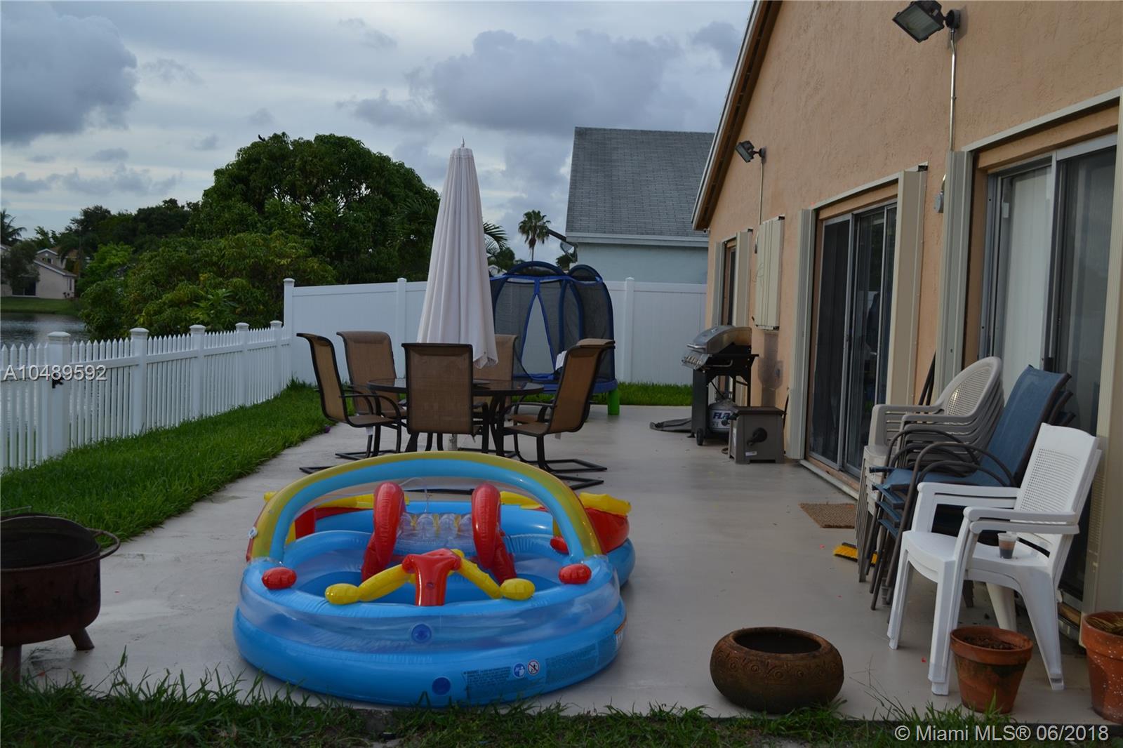 Gorgeous lake view and very well kept 3/2 home with 2 car garage near Miramar Parkway. Has lots of upgrades, Kitchen with granite countertop, Samsung black stainless steel appliances, updates bathrooms, 24x24 Porcelain tiles, Accordion shutters in the whole house, electric shades in the living and dining area, Knock down textured walls, 2 year old fence and very low HOA fees. Washer and dryer will be replaced with other ones.