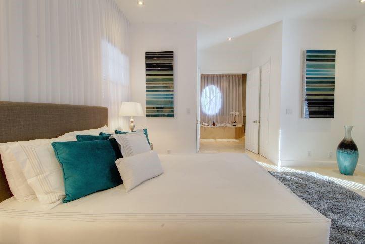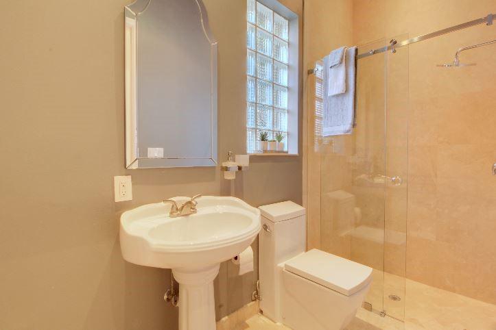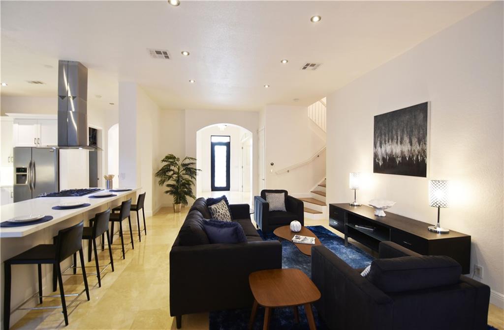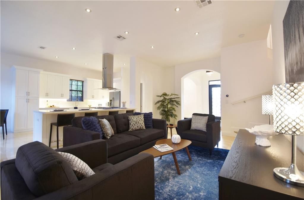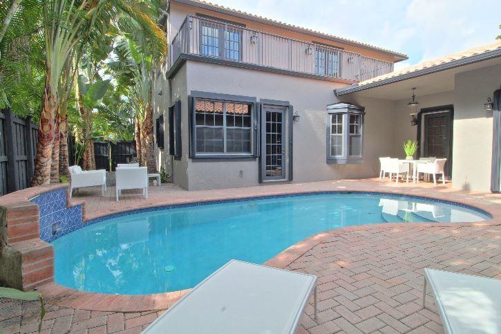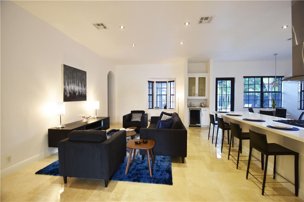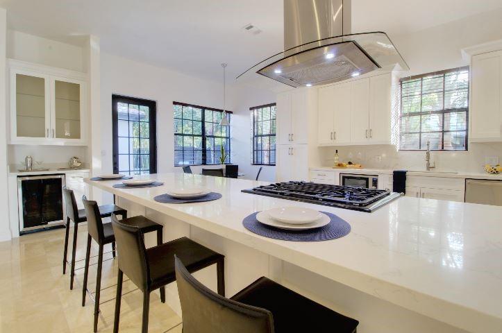 Beautifully appointed 5 bedroom 4 bath modern home ready for your personal touches. Corner lot with garage in rear and plenty of guest parking. New large open kitchen with natural gas cooking, stainless steel appliances. Large master suite and 2 additional bedrooms first floor. 2 en-suite guest rooms on second level. Saturnia marble floors, beautiful wood staircase. Central vac, Murano glass chandeliers, new washer & dryer, wine cooler,pantry. All Custom Closets, LED lighting,free form large private pool.
