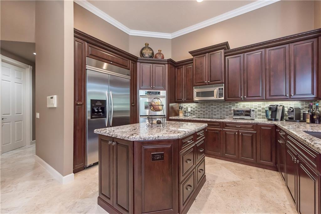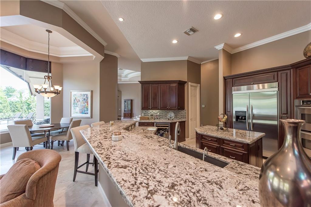 INCREDIBLE OPPORTUNITY!! This exquisitely appointed .92 acre estate has been completely remodeled with the finest quality & craftsmanship. Exceptional features incl: stunning kitchen w/custom wood cabinets, granite counters, center island, & walk-in pantry; marble floors in main living area; beautiful master bath; wet bar in living room; volume ceilings w/crown molding; single pane Fr. doors; large screened loggia, htd pool & spa w/waterfall; marble patio; & spacious, fenced backyard! Impact & accordion!