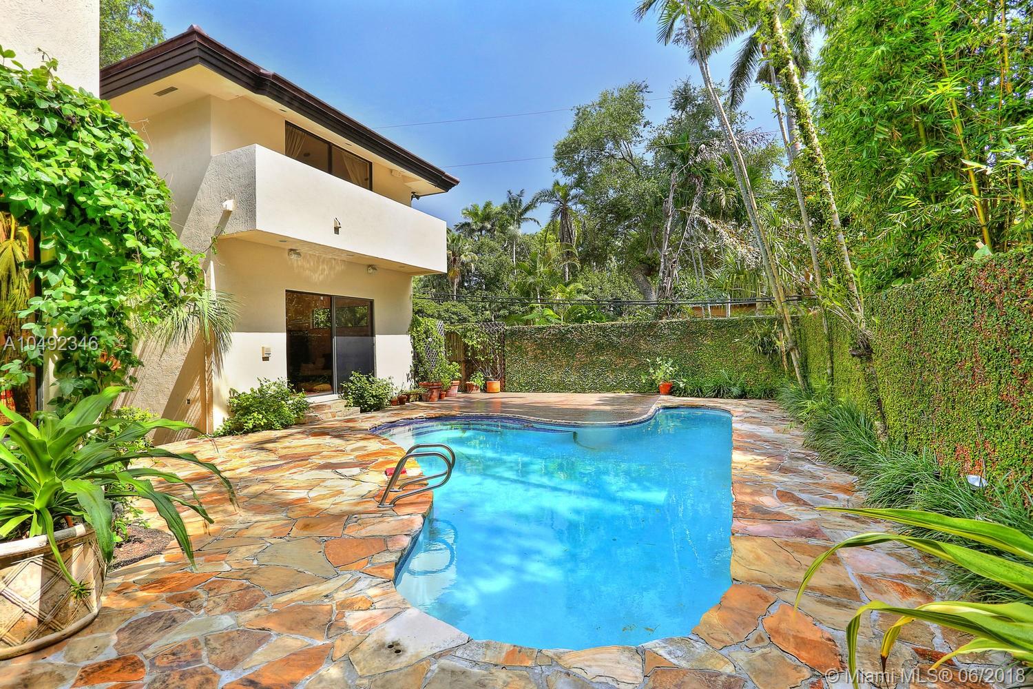 Lovely gated home, set back behind a coral rock wall & privacy hedge in lush South Coconut Grove. Light-filled rooms with high ceilings & stunning new hardwood flooring. Formal living, dining and family room, overlook tropical garden. Open kitchen features wood cabinetry, granite countertops, stainless appliances & adjacent breakfast area. Downstairs guest/housekeepers room. Second floor consists of 3 bedrooms with new en-suite baths and a large master suite with separate sitting area, balcony & new spa-like master bath. Expansive, walled backyard with tropical pool and terrace. New roof. Walk to highly rated private schools and to the Grove village center’s galleries, boutiques, cafes, bayfront parks & marinas. Minutes to downtown, MIA, Coral Gables, Key Biscayne and the​​‌​​​​‌​‌​​​​‌‌​‌​​​​‌‌​​‌‌​​‌‌ Beaches.