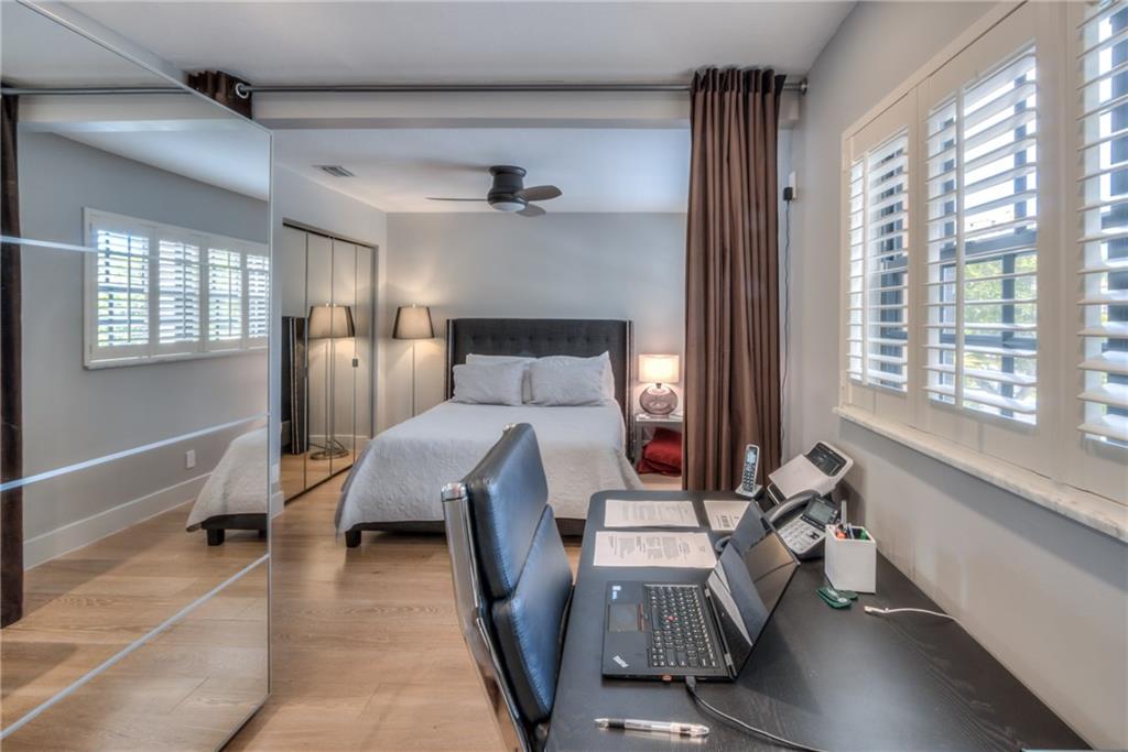 STUNNING corner residence completely updated. 2/2.5 plus office & laundry room. Beautiful high-end solid wood flooring & modern design throughout. Entertain in your brand new open kitchen w/quartz countertops & modern white cabinetry centered between large dining & living area. Living room opens up to private spacious patio w/jacuzzi. 2nd story is split floorplan w/laundry room. Master has walk-in closet while guest bedroom has separate office attached. Residence offers clubroom, pool, & 2 parking spots.