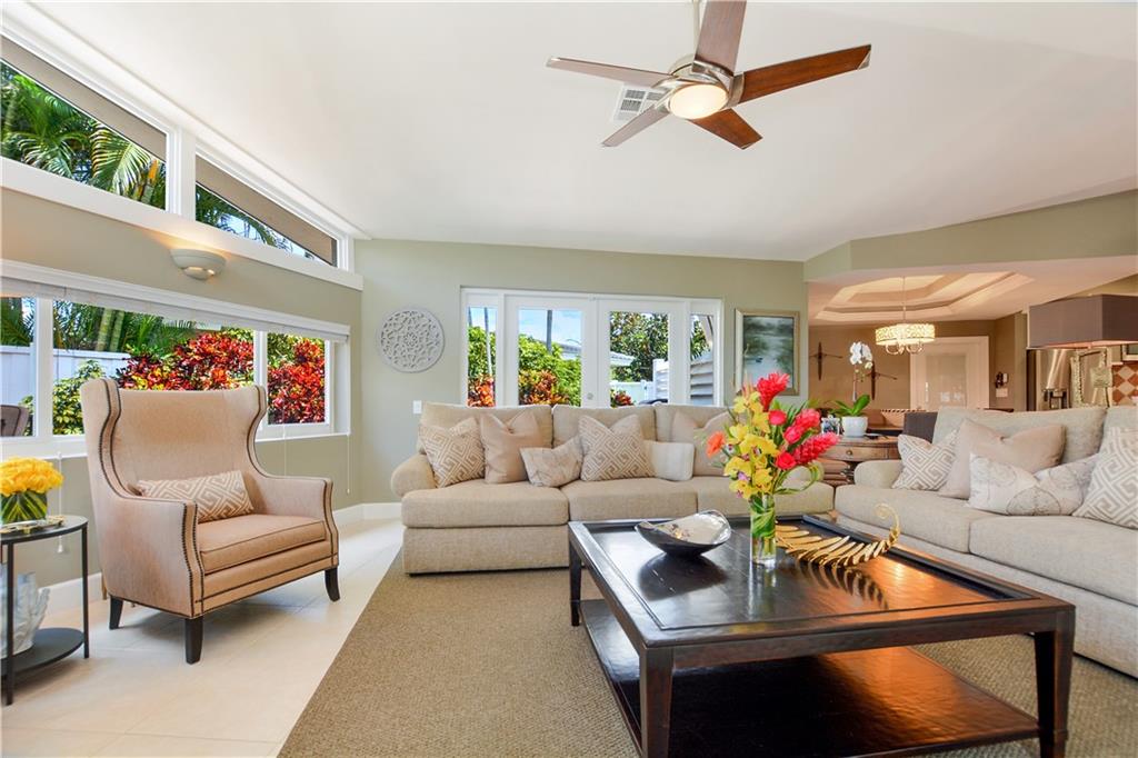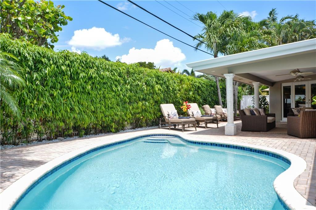 Beautifully renovated 3BR/2BA/2CG pool home located in the esteemed Coral Ridge Country Club offers the most fantastic, expansive loggia & pool area punctuated by pristine landscaping-absolute paradise! This home has a California-feel featuring an open kitchen w/ gas cooking, vaulted ceilings in living room, & French doors to maximize the garden & pool views throughout. Energy efficient: Newer Roof (2017), impact windows/doors (2018), foam insulation. Smooth ceilings. Minutes to beach, golf, restaurants.