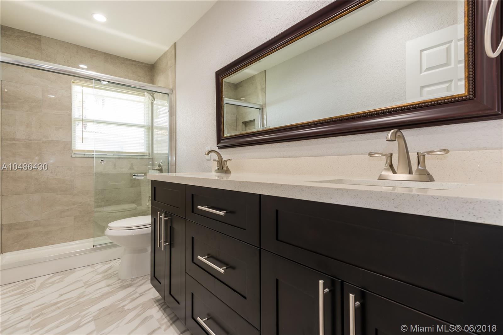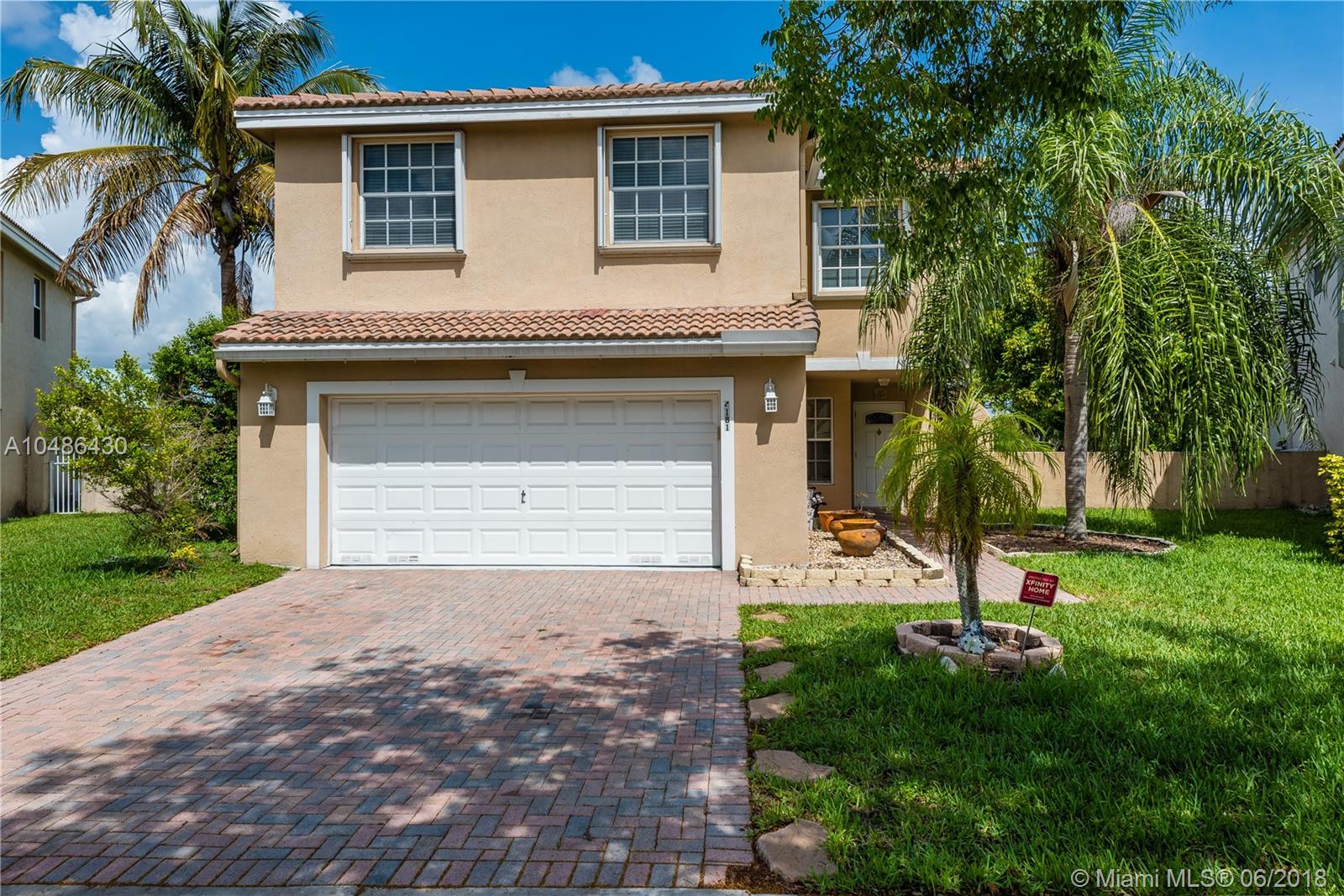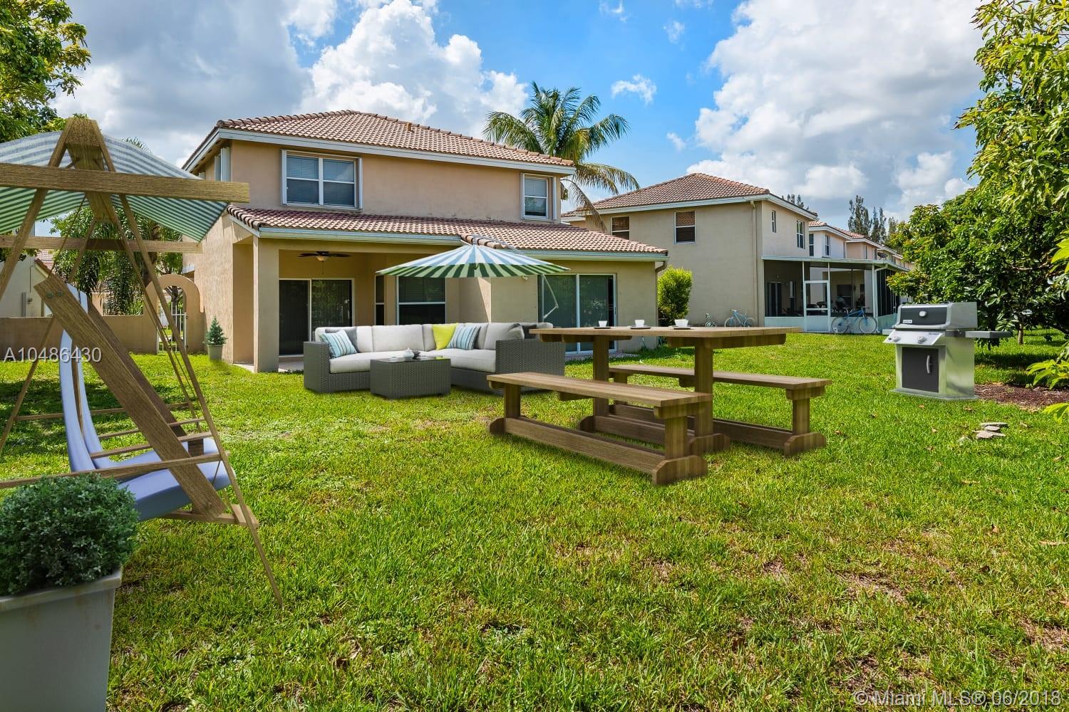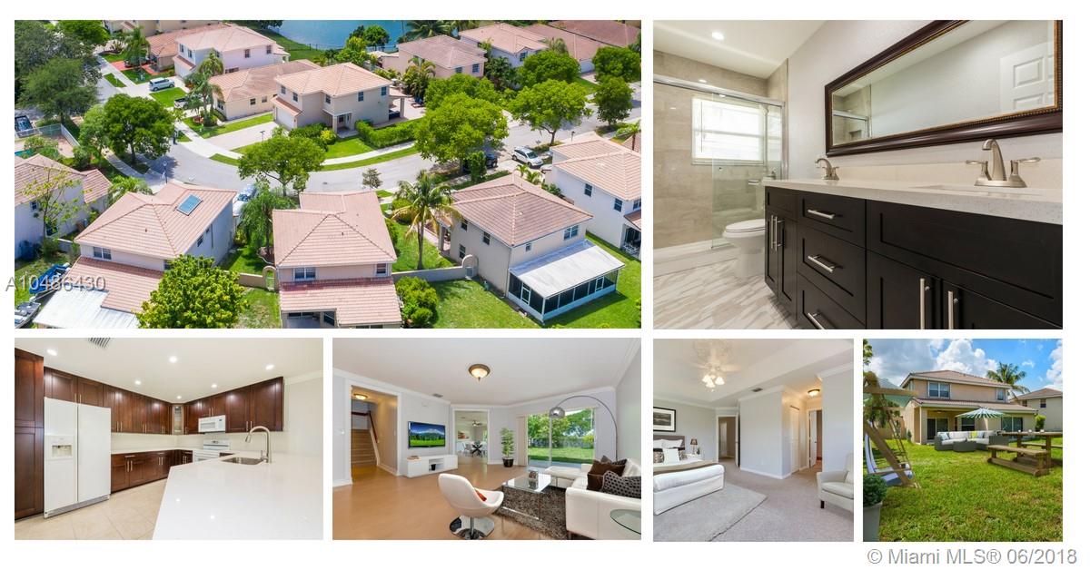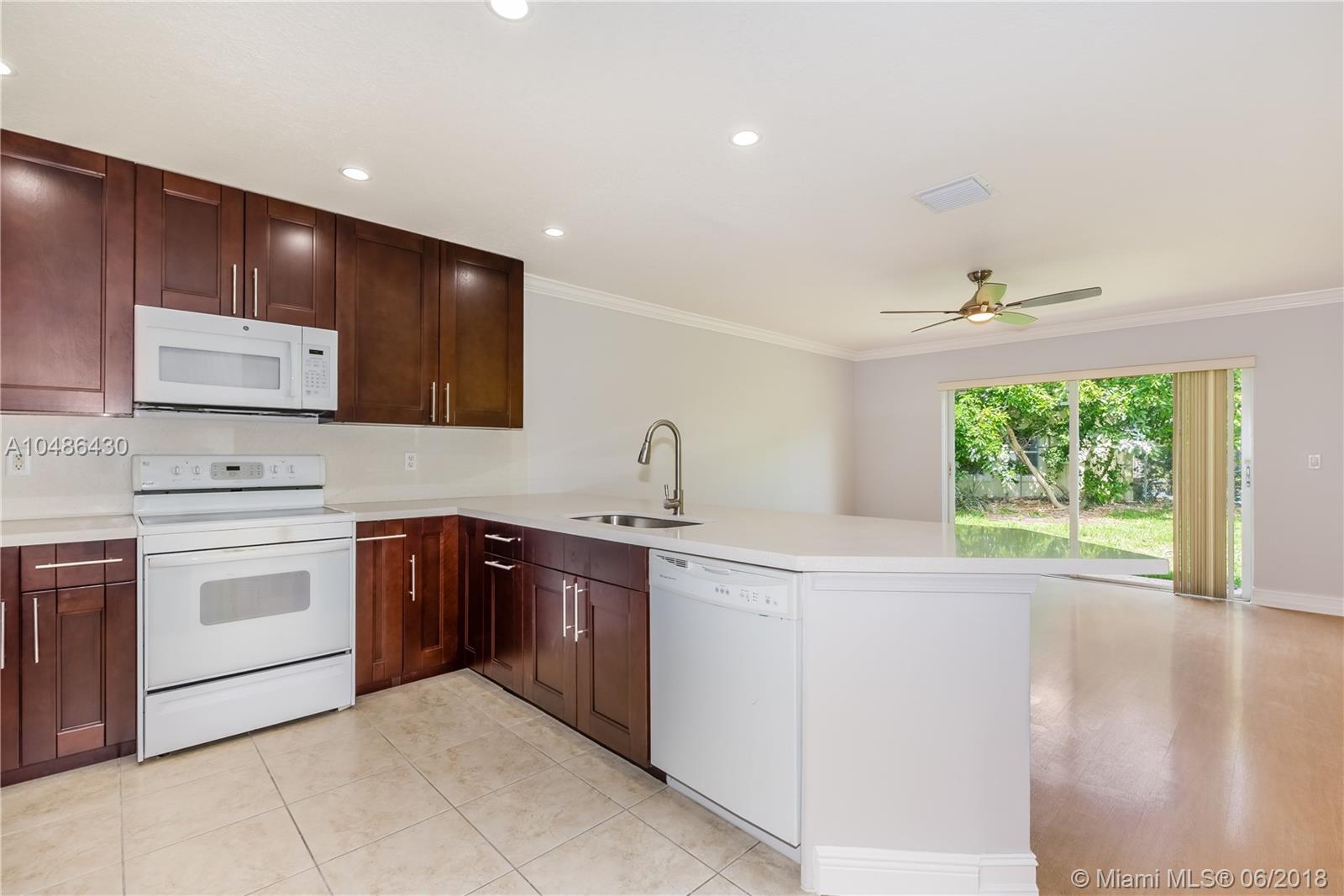 Oversized lot ready for immediate occupancy offering a family 4bed 2.5bath 2 car garage. This bright home includes crown molding, fresh paint & gorgeously remodeled 2017 kitchen with soft close cabinets and Quartz counter-top allowing for an open floor plan perfect for entertainment. Upstairs offers dual sinks in both upgraded bathrooms & a spacious master bedroom with 2 walk-in closets. Home also has new A/C 2018 with 10yr warranty; well maintained roof; accordion shutters on 2nd floor. Private backyard is tranquil with green views and fruit trees with room for a pool! Low monthly HOA $132 covers common area, community pool & basic cable! Conveniently located to most major stores, restaurants & universities make this a must see home!!