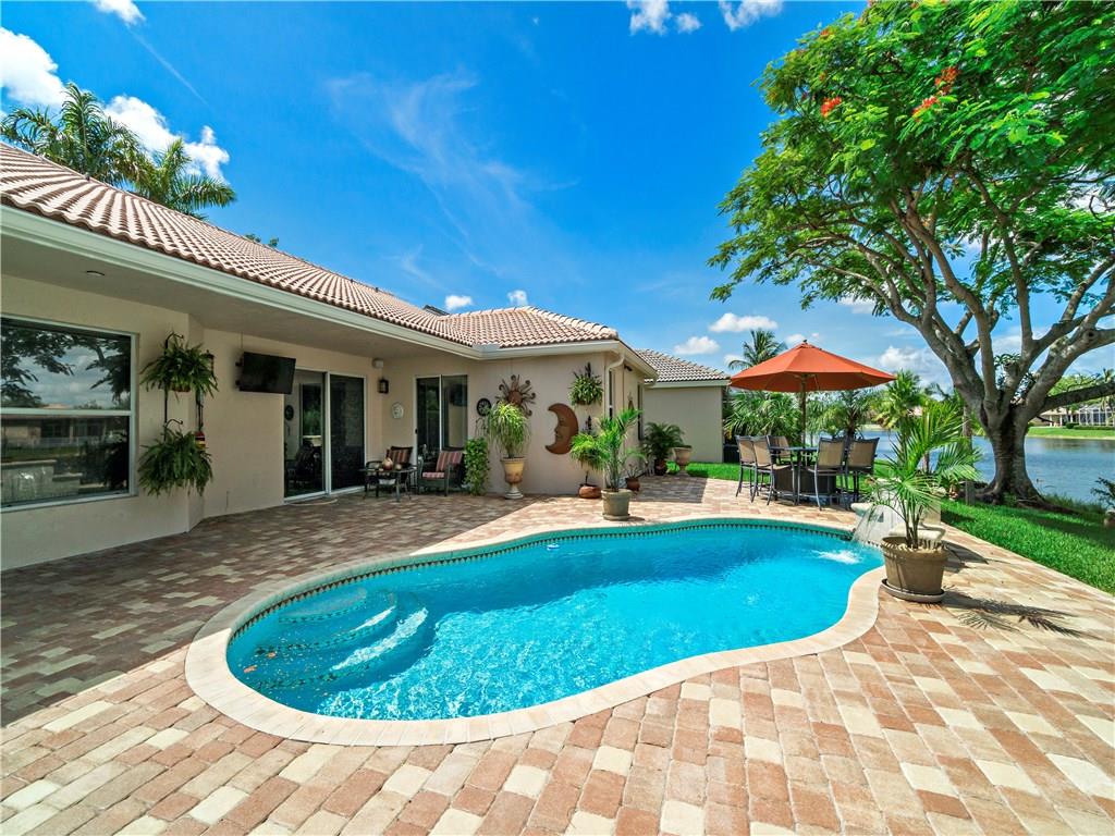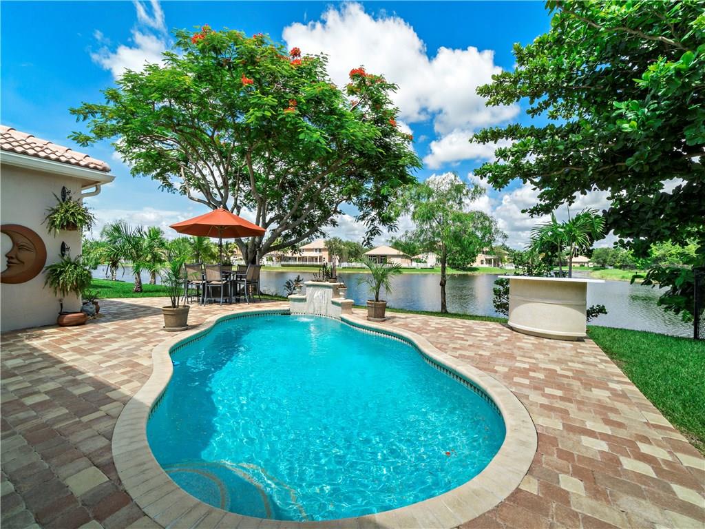 A RARE OPPORTUNITY TO OWN THIS WELL MAINTAINED 4 BEDROOM 2.5 BATH HOME WITH THE MOST MAGNIFICENT LAKE VIEWS IN EXCLUSIVE COMMUNITY OF ONLY 85 HOMES. GREAT CURB APPEAL . SPLIT BEDROOM PLAN OFFERS PLENTY OF PRIVACY.AGELESS ARCHITECTURAL DETAILS THRU-OUT THIS OPEN FLOOR PLAN. TILE IN LVING AREAS, NEW CARPET IN 2 BEDROOMS. NEWER REFRIGERATOR, WASHER , WATER HEATER & HURRICANE TINT. OPEN KITCHEN WITH GRANITE & TONS OF CABINETS. RESORT POOL WITH EXTENDED PATIO FOR ENTERTAINING & ENDLESS LAKE VIEW. LOW HOA!