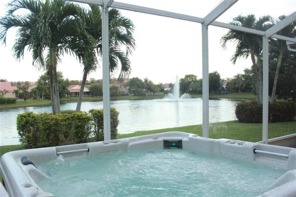 Immaculate overseeing a beautiful lake!! 4/2.5 home Screened patio, with outdoor SPA Jacuzzi. Accordion shutters, impact resistant doors & windows. Oversized Master Bedroom. Wood floors throughout w/SS appliances on a designer Italian kitchen. Gas stove/Gas Water Heater. Basic Comcast Cable included in HOA fee. Master suite w/5 closets, 2 sinks & separate roman tub/Jacuzzi & shower. Multiple rooms overlook big lake including master. Bonaventure Town Center Club w/pools, gym, bowling, tennis, racquetball.