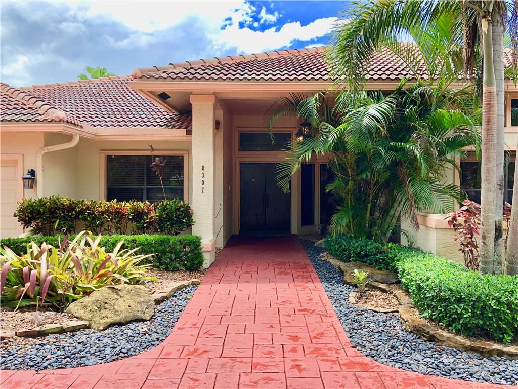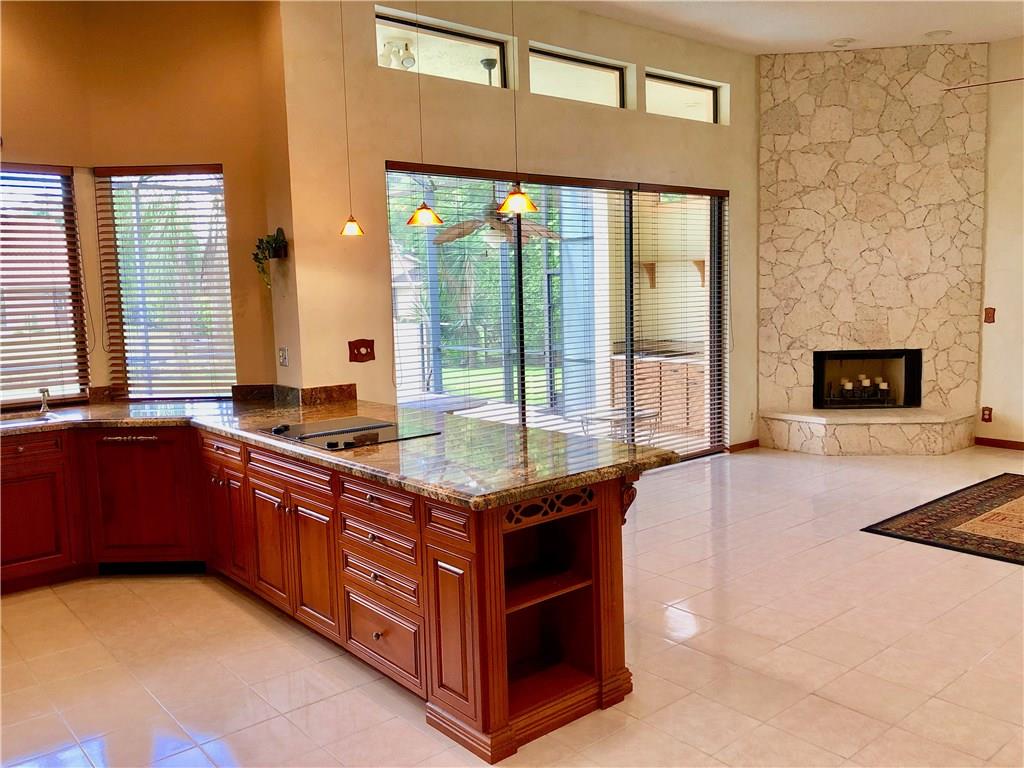Rarely available 5/3, 3car garage home situated on an oversized water lot in the sought after neighborhood of Pine Grove.House features a beautiful upgraded open kitchen with granite and SS appliances,wine cooler, pass through.Split floor plan.High ceilings with lots of natural light.Huge master bedroom overlooking the pool and lake.Master bathroom is a must see.The screened covered patio w/summer kitchen,pool & spa overlooking the lake makes it perfect for entertaining.Hurricane shutters.AC 2011.Low HOA.