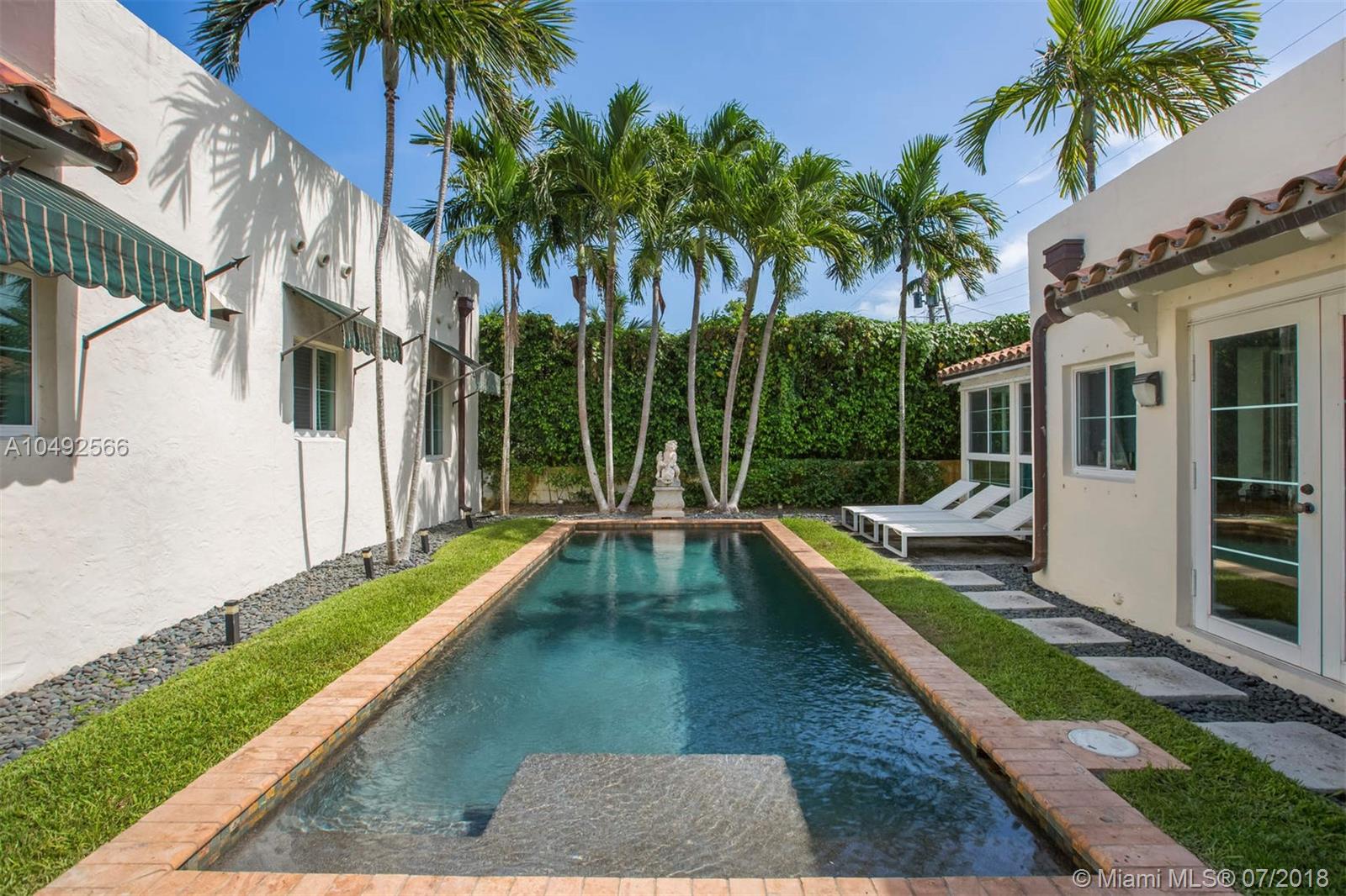 Walk into the foyer and immediately feel relaxed and at ease. Built in 1939 this Miami Beach home has an open and light filled floor plan, beautiful original details, full updates and a lushly landscaped garden. Exposed beamed ceilings, wood floors, Chicago brick and secluded limestone terrace all add to the charm and comfort. West facing chef’s kitchen is complete with 2 sinks, 2 dw’s and viking stove. Main house has 3 BD and 2 BA. Pool cabana house opens to a heated pool and has a media room, mini kitchen and 2 BD & 1 BA. Cabana house is perfect for poolside gatherings and allows privacy for guests. Located in desirable Mid-Beach. Walking distance to shops, restaurants, schools and Pinetree Park. Conveniently located 1 mile to the Miami Causeway and ½ mile to the Beach.