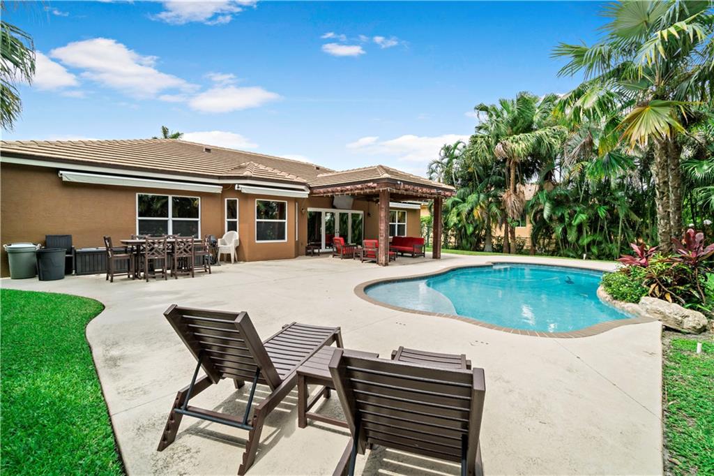 Completely remodeled 3/2 pool home in Plantation Acres. Updated kitchen with SS appliances, granite counters and wood cabinets. Upgraded bathrooms and large master bedroom with sitting area. Tile floors in living area and wood in bedrooms. Surround sound system and impact glass. 2 year old roof. French doors lead to totally private pool area with pergola canopy and automated awnings.