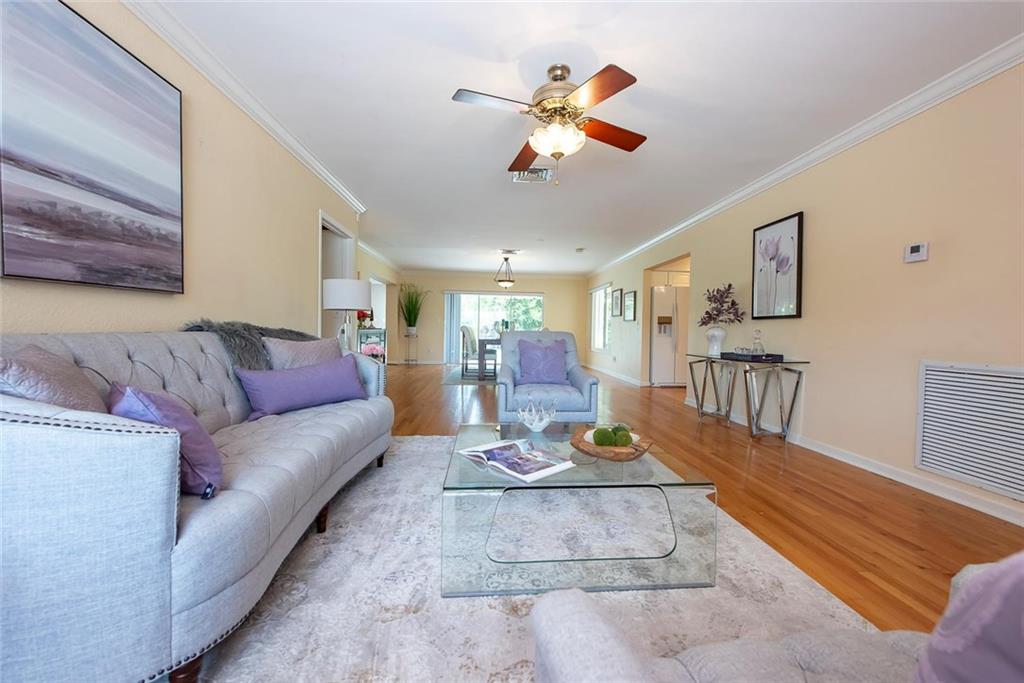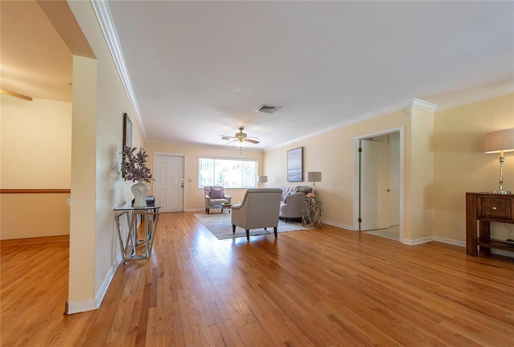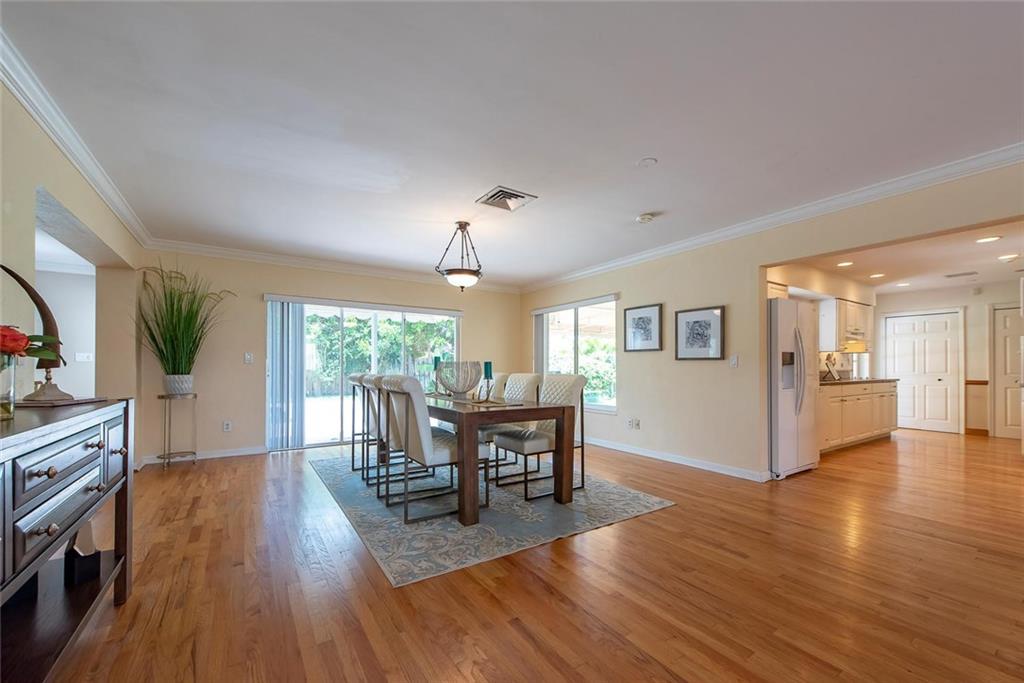 Coral Ridge Country Club Ranch style home. Light, bright and open wide to pool and patios and fenced lawn. Living room plus large family room. Great kitchen with lots of cabinets for storage, granite counters, 2 pantries, eat in area and adjoining covered patio for alfresco dining. Separate bedroom wing. Master with large walk in closet and bath. Outstanding features include brand new roof, hardwood floors in all living areas, pavered drive and patios, inside laundry room and two car garage.