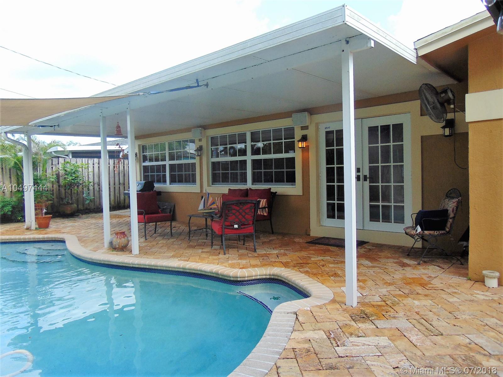 Come check out and make an offer on this updated and well maintained West Sunrise Pool Home. Pavers and low maintenance flowering yard invite you in. Interior features 3 bedrooms, 2 baths with quality laminate flooring throughout. The large kitchen has plenty of room for storage and prep along with stainless steel gas appliances. Choice of dining area from the eat in kitchen, dining room or patio. Updated lighting with dimmers. The extended backyard is great for entertaining in the free form pool and covered areas. Natural gas grill will be left for your enjoyment. Pool is easy to care for with salt chlorination system. Peace of mind in storm season with updated windows (impact+accordion shutters), city supplied natural gas and full home back up generator. No HOA. Rear access to Plantation