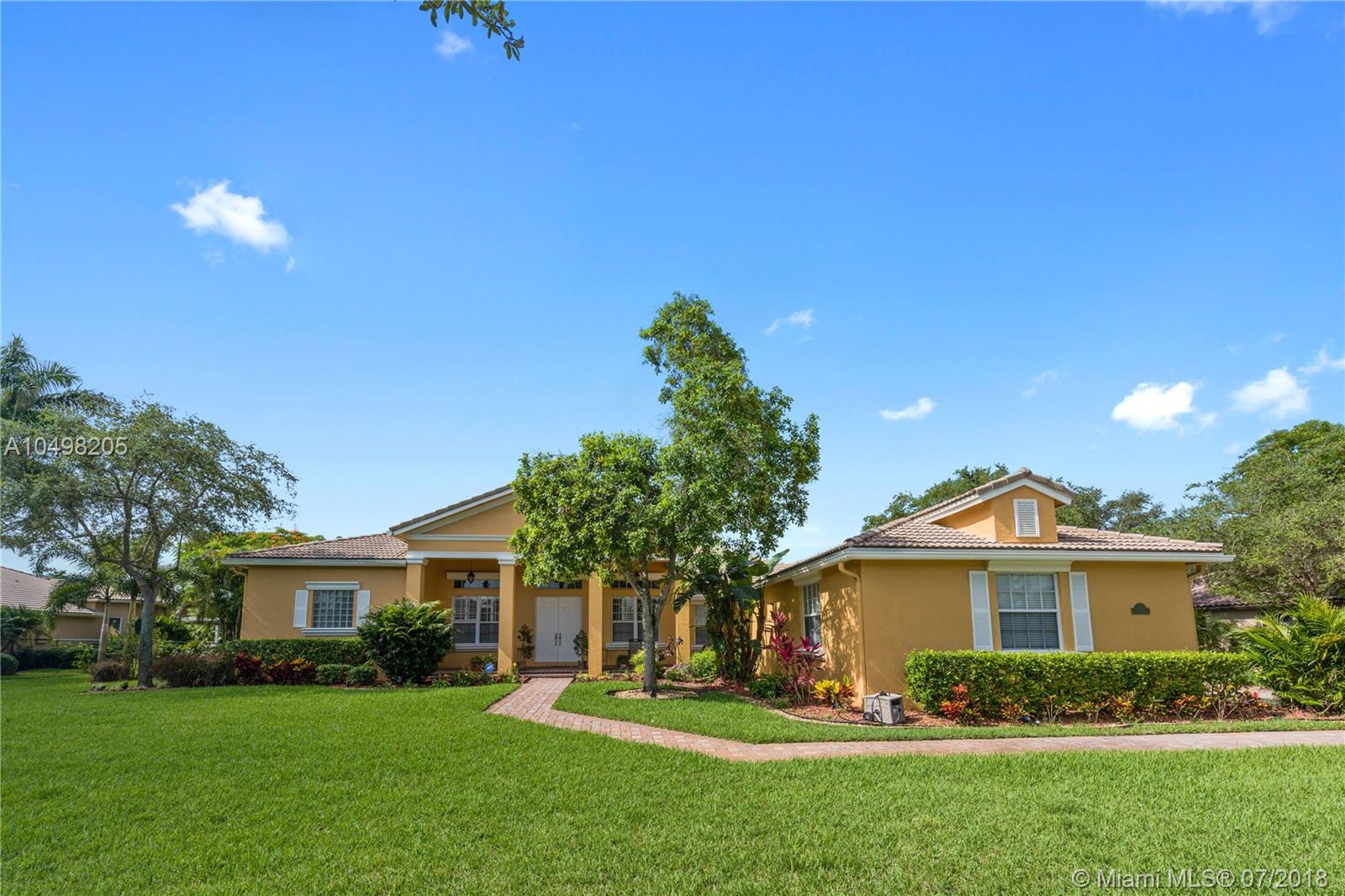 Spectacular Saddlebrook Pool Estate awaits! This meticulously maintained gem is located in one of West Davie's most desirable gated neighborhoods! Spacious Living Areas, Open Concept provides High Ceilings, Side Loading 3 car garage, Huge Fenced Lot, Large Covered Patio and Deck area. Excellent house for growing family or for Entertaining! Triple split plan, crown molding, gourmet kitchen featuring Stainless Steel appliances, Granite and custom cabinetry, lots of storage and Butler's Pantry. Multi Zoned A/C, Master Bedroom Suite includes sitting area, Beautifully remodeled Master Bathroom suite feels like a Spa! Neutral colors, quality appointments and great curb appeal. A fantastic community in one of Broward County's top School Districts, Centrally located near Fine Dining, Shopping!!