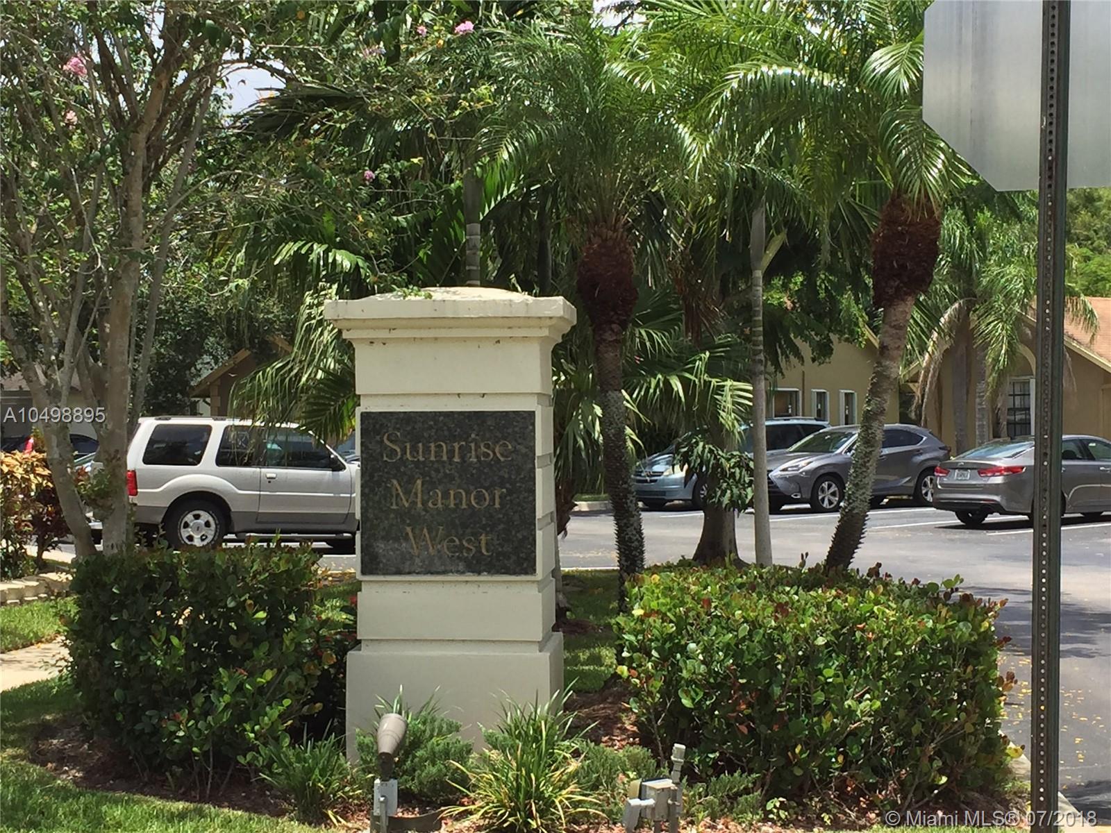 Charming Townhouse on a great location in the secluded but central community of Sunrise Manor West. Spacious 3 bedrooms and 2 full bathrooms on the second floor, Master suite with walk-in closet. Half bathroom on the first floor. Newer kitchen, living, dining and family room. Tile throughout the first floor, carpet on second. Great for investors, unit can be rented right away. Attached 1 car garage and repaved driveway accommodating two cars. Excellent access to Sawgrass Expressway and I75. Conveniently close to Sawgrass Mills and schools.